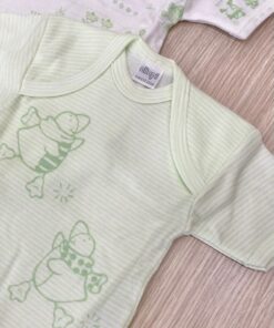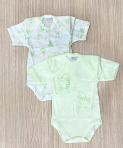 Coppia body neonato/a in morbido caldo cotone, leggermente felpato, di colore verde e bianco.