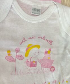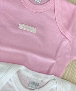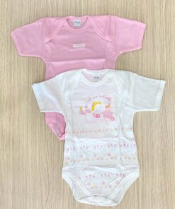 Coppia body neonata in cotone, di colore rosa e bianco.