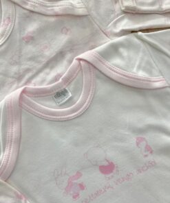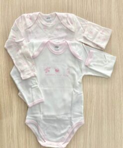 Coppia body neonata in morbido caldo cotone leggermente felpato, di colore rosa e bianco.