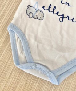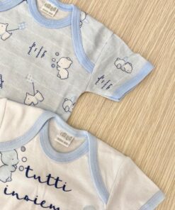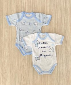 Coppia body neonato/bambino, in cotone, di colore azzurro e bianco.