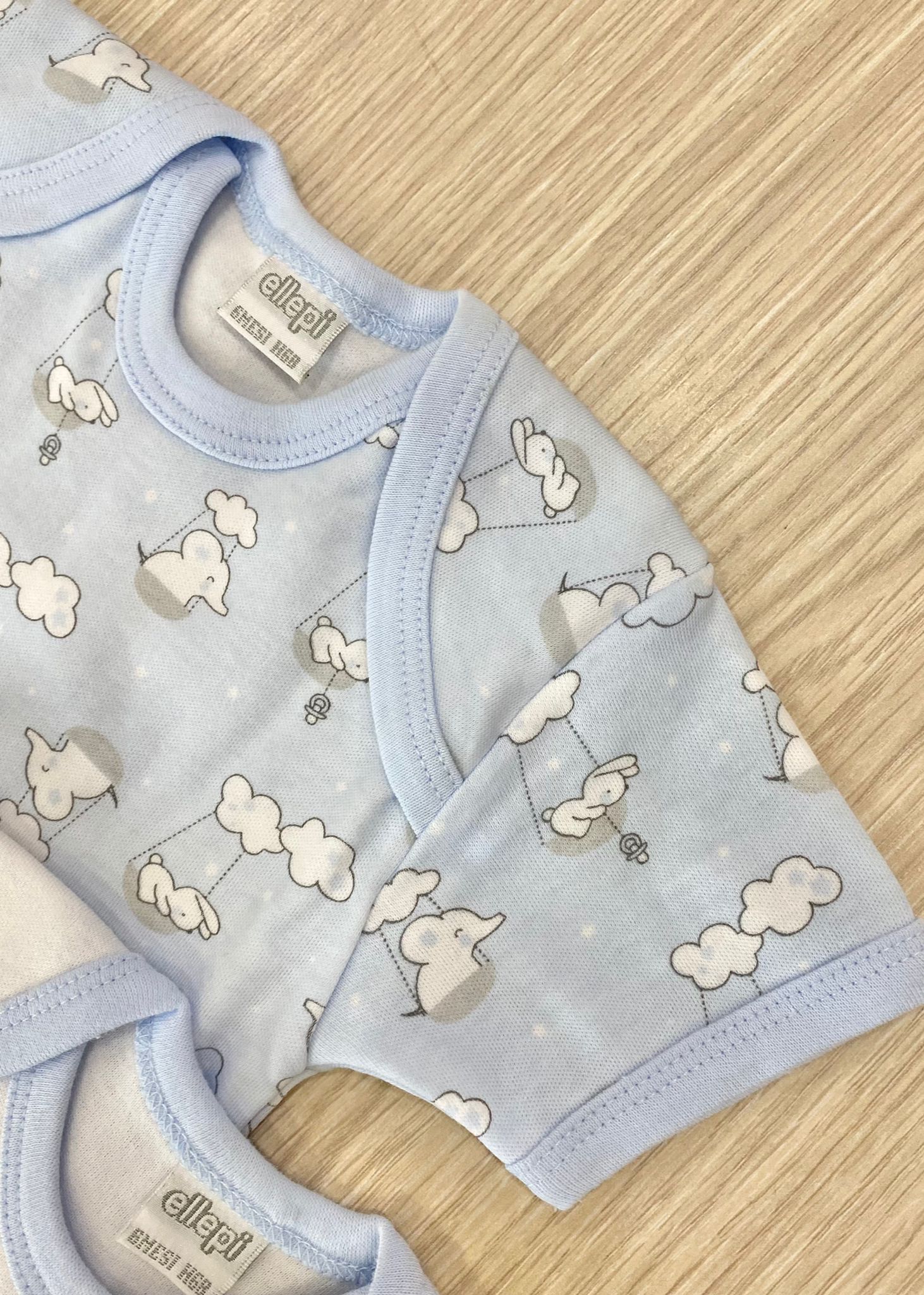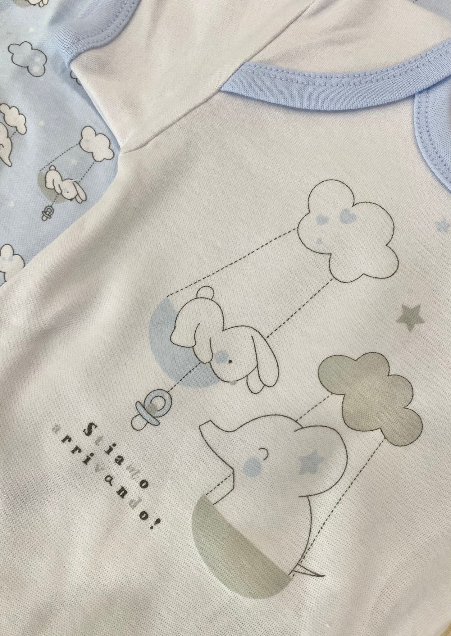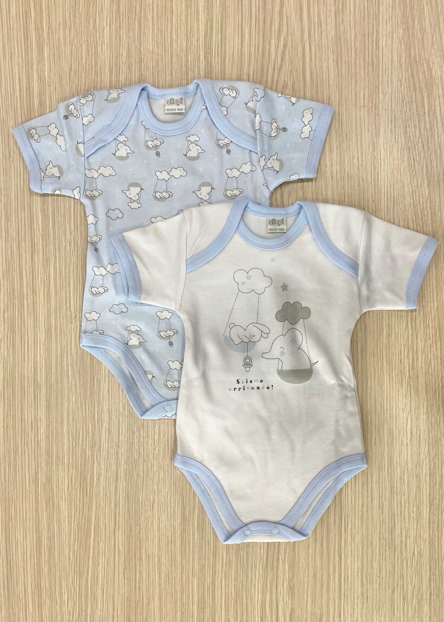 Coppia body neonato/bambino in caldo cotone leggermente felpato, di colore azzurro e bianco.