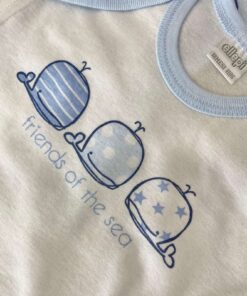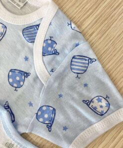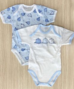 Coppia body neonato/bambino in cotone, di colore azzurro e bianco.