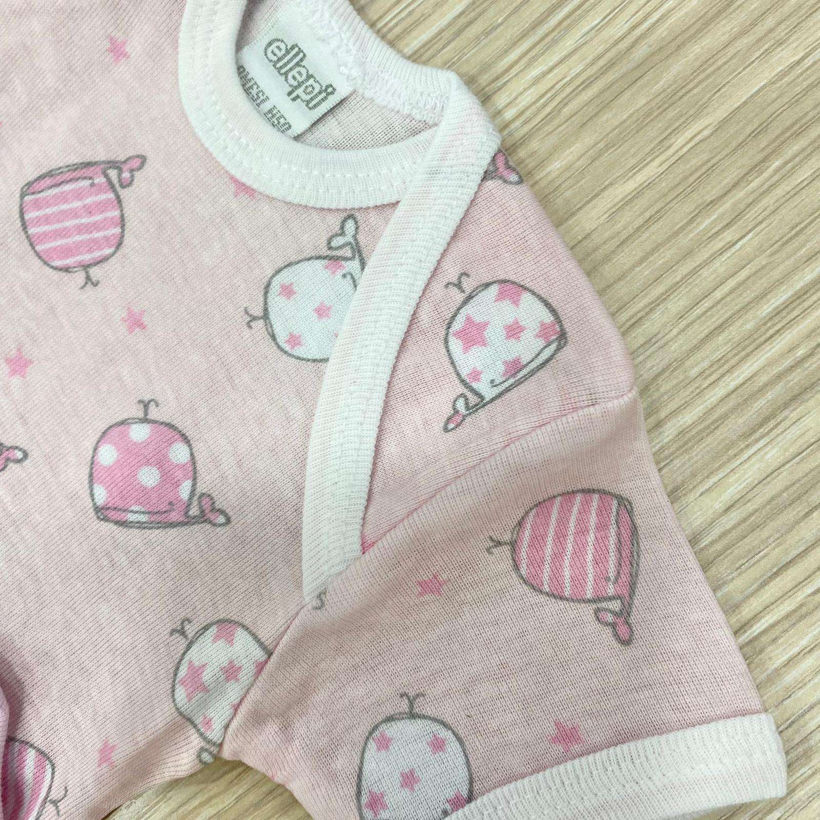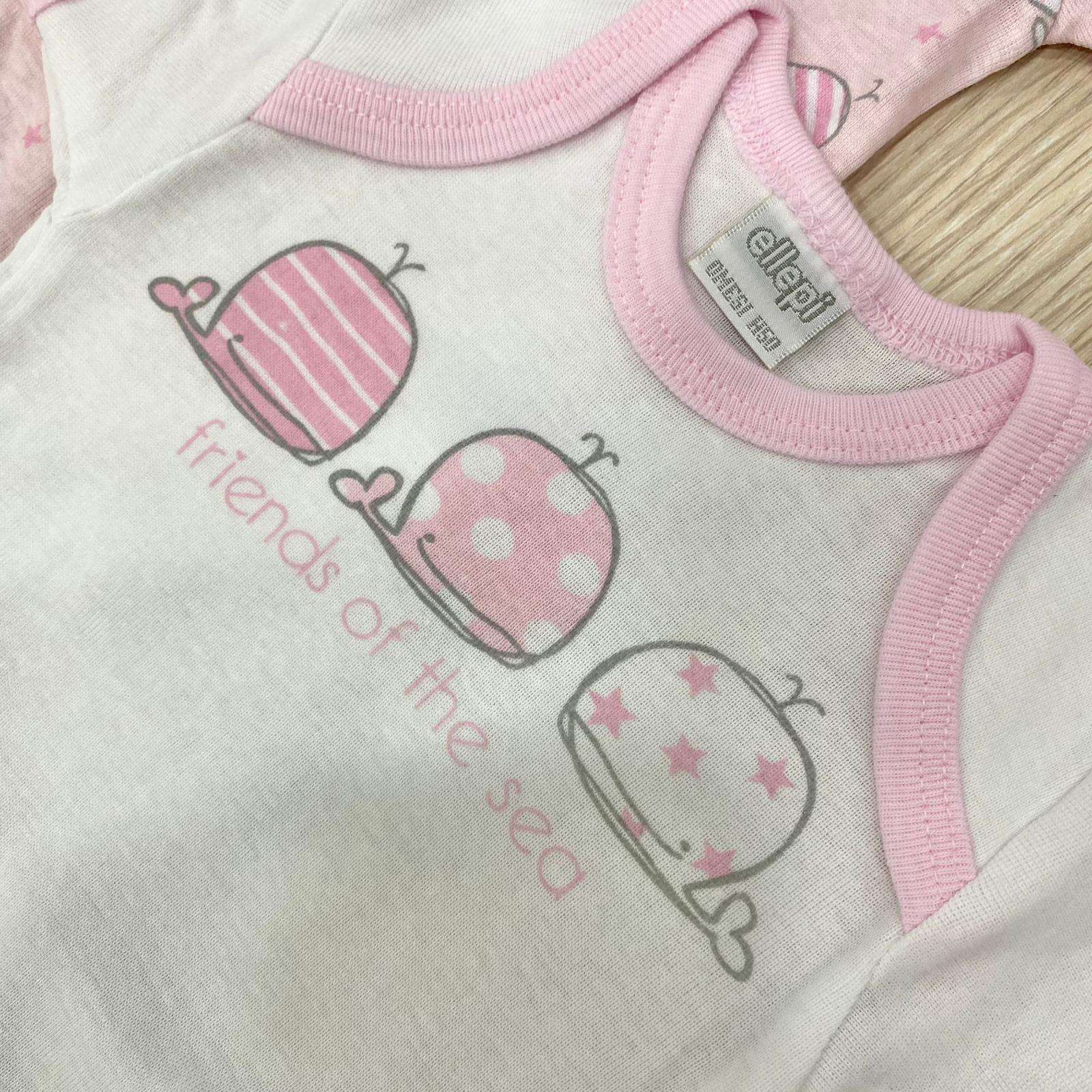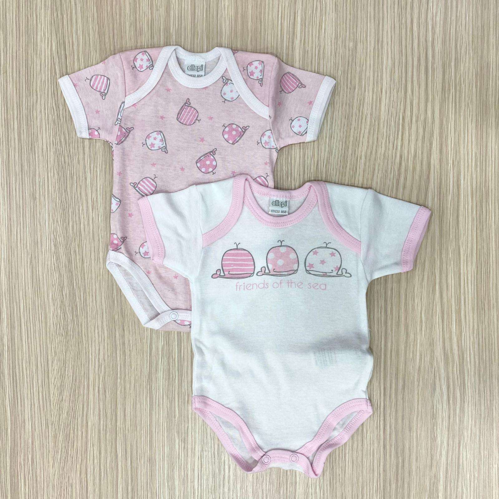 Coppia body neonata in cotone, di colore rosa e bianco.
