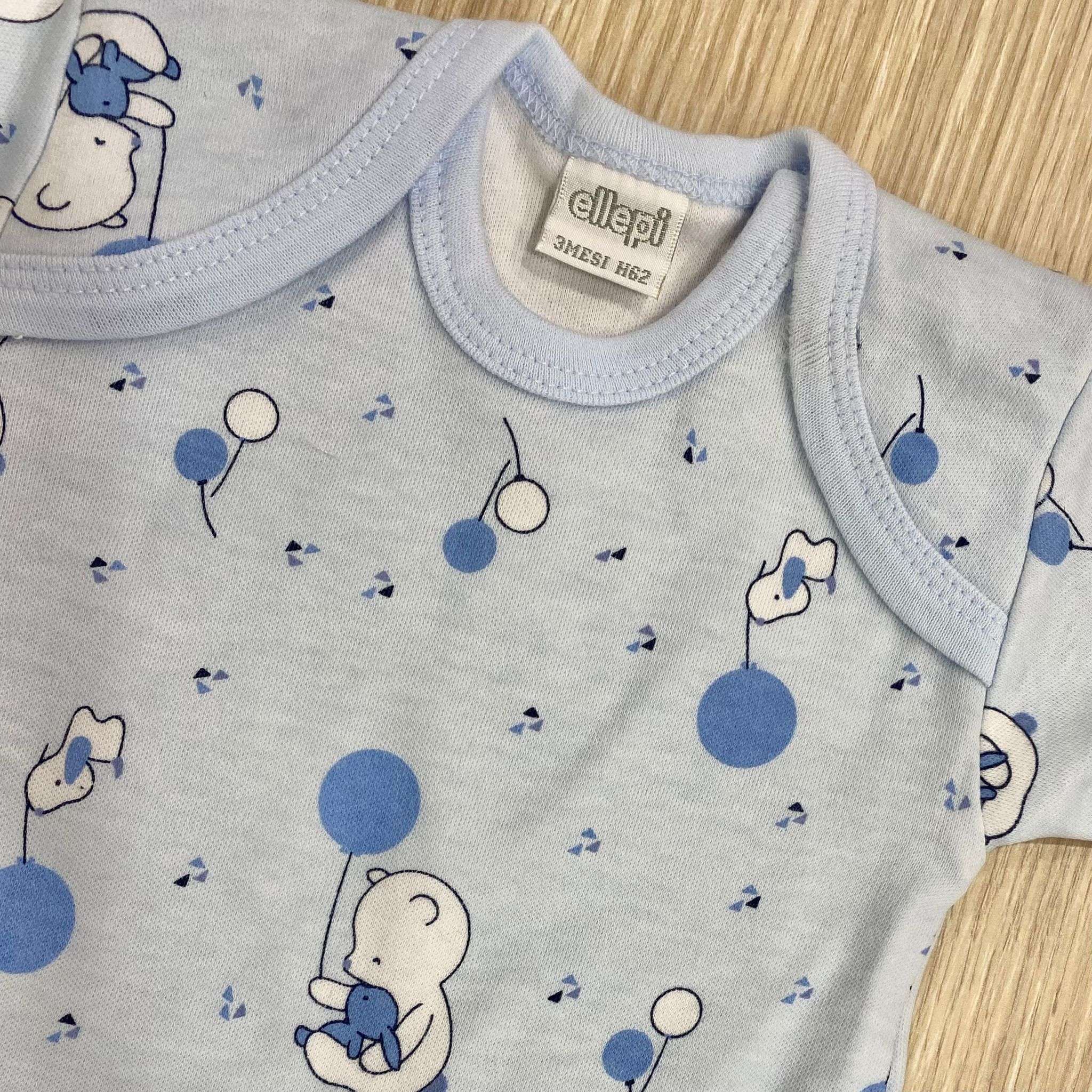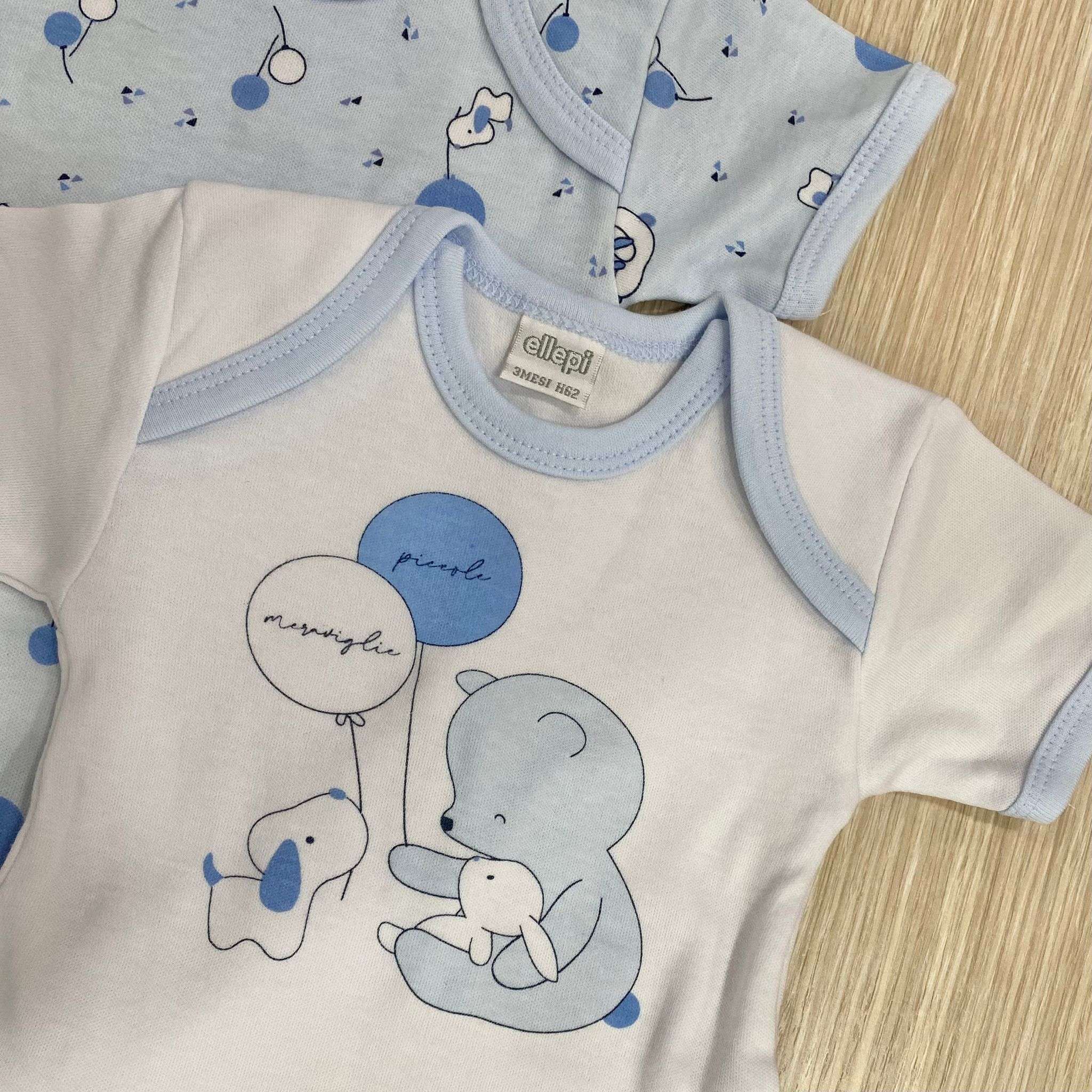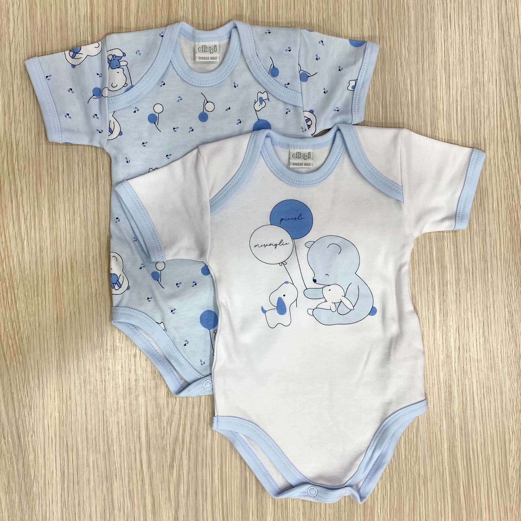 Coppia body neonato/bambino/ in caldo cotone leggermente felpato, di colore azzurro e bianco.