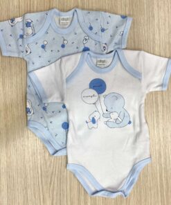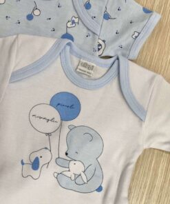 Coppia body neonato/bambino/ in caldo cotone leggermente felpato, di colore azzurro e bianco.