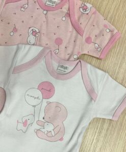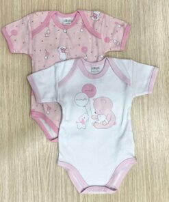 Coppia body neonata/bambina in caldo cotone leggermente felpato, di colore rosa e bianco.
