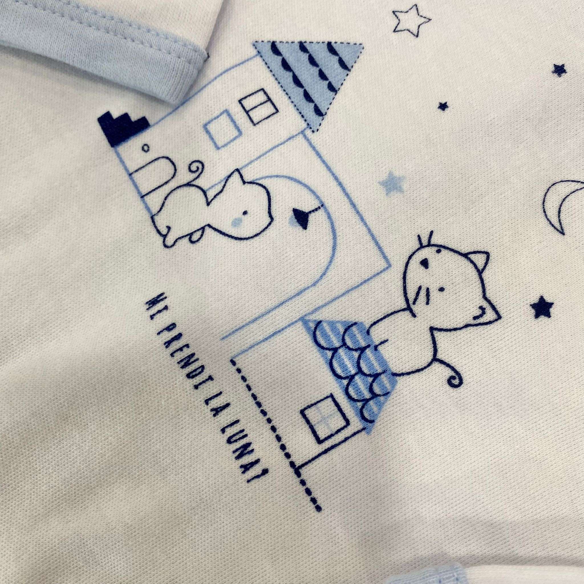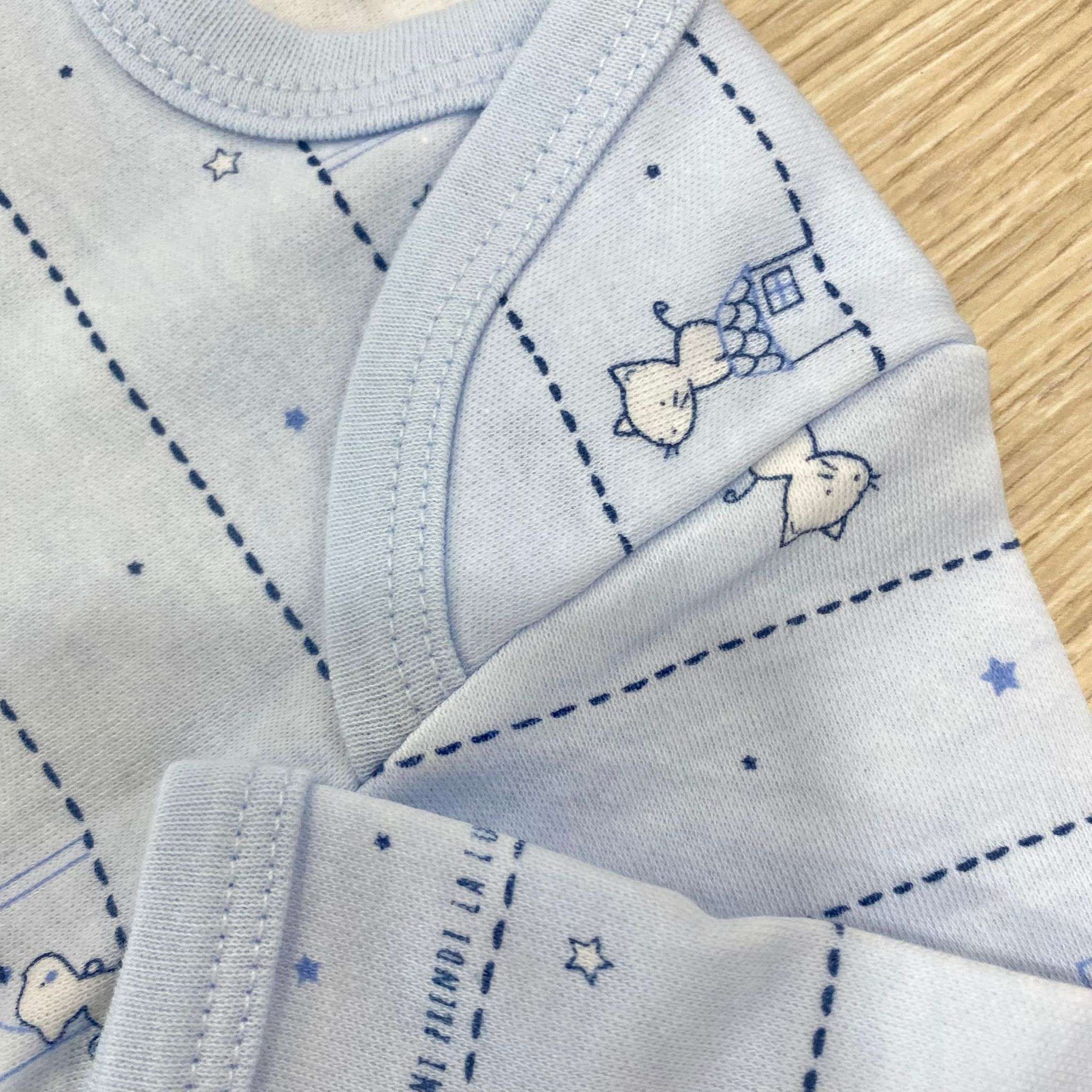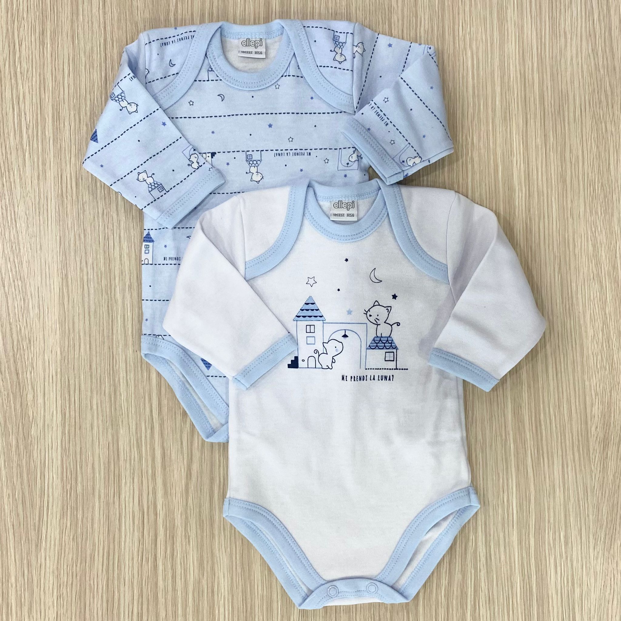 Coppia body neonato in caldo cotone leggermente felpato, bianco e azzurro.