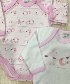 Coppia body neonato in caldo cotone leggermente felpato, di colore bianco e rosa.