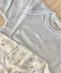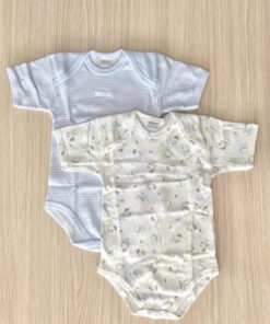 Coppia body neonato in morbido caldo cotone leggermente felpato, di colore azzurro e bianco.
