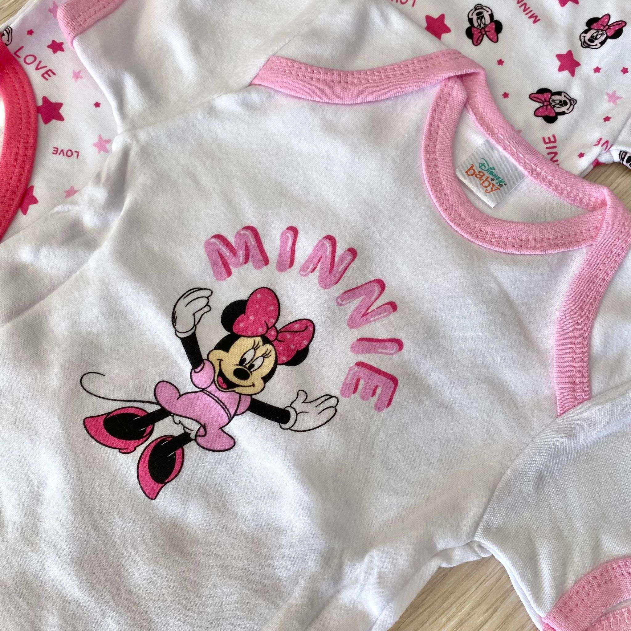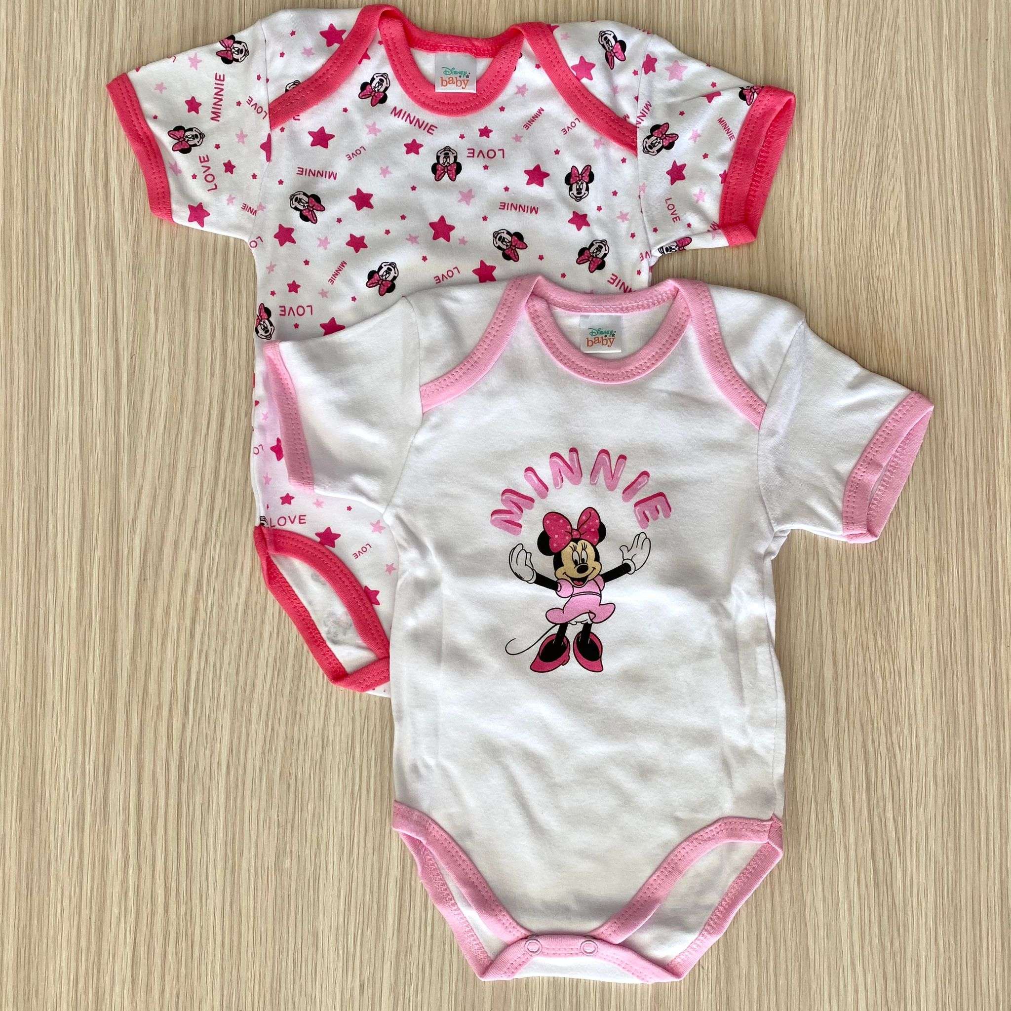 Coppia body in caldo cotone, di colore bianco e rosa con disegno di vari colori.