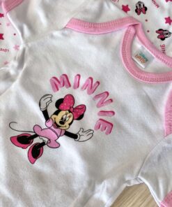 Coppia body in caldo cotone, di colore bianco e rosa con disegno di vari colori.