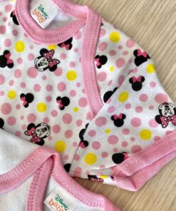 Coppia body in caldo cotone, di colore bianco e rosa con disegno di vari colori.