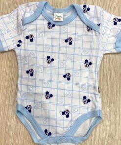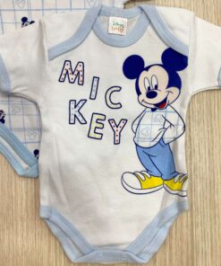 Coppia body in caldo cotone, di colore bianco e azzurro con disegno di vari colori.