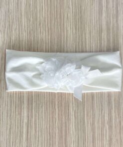 Fascetta bambina in cotone elasticizzato, di colore panna, con applicazione in rilievo.