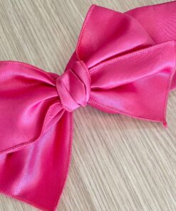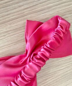 Fascetta bambina in cotone rasato elasticizzato, di colore fucsia, con applicazione di fiocco.