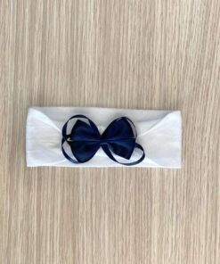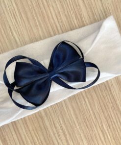Fascetta bambina in cotone, di colore bianco con fiocco di colore blu.