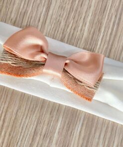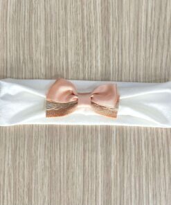 Fascetta neonata in cotone, di colore panna, con fiocchetto di colore corallo.