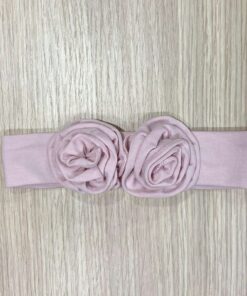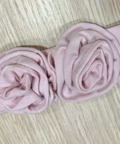 Fascetta neonata in cotone elasticizzato, di colore rosa, con applicazione di fiorellini in tessuto.