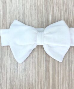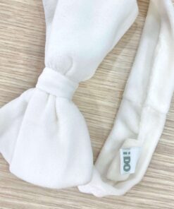 Fascetta neonata in ciniglia, di colore panna, con fiocco.