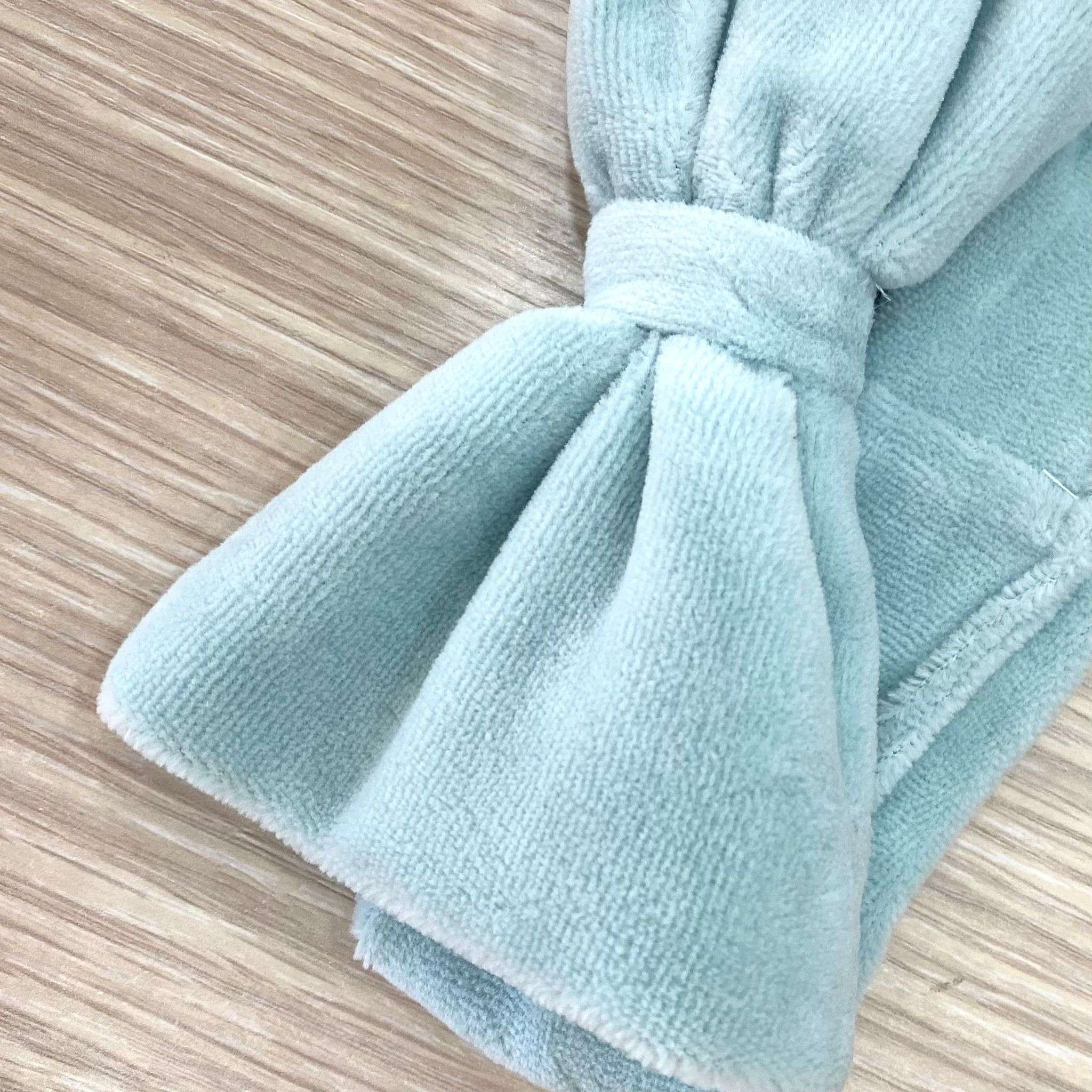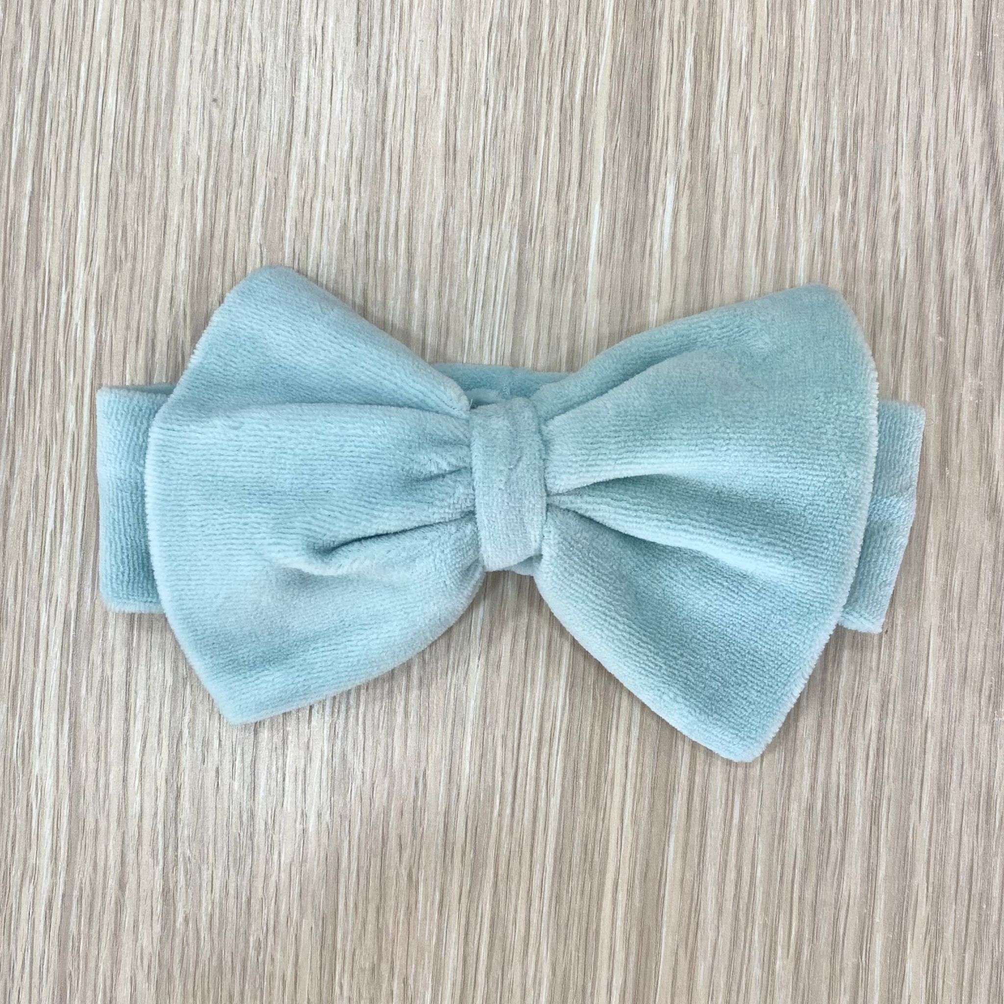 Fascetta neonata in ciniglia, di colore verde salvia, con fiocco.