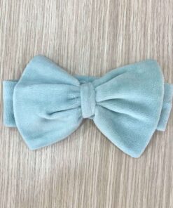 Fascetta neonata in ciniglia, di colore verde salvia, con fiocco.