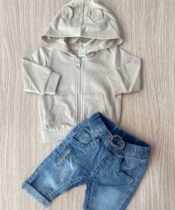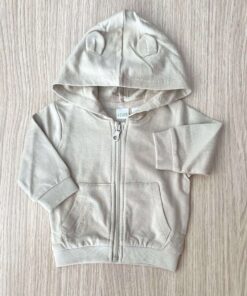 Il cappuccio con simpatiche orecchiette applicate dona un tocco tenero e giocoso, mentre le tasche frontali aggiungono funzionalità e stile. Il colore neutro ed elegante la rende facilmente abbinabile a qualsiasi outfit. Rifinita con polsini e fondo elasticizzati per una vestibilità comoda e avvolgente.