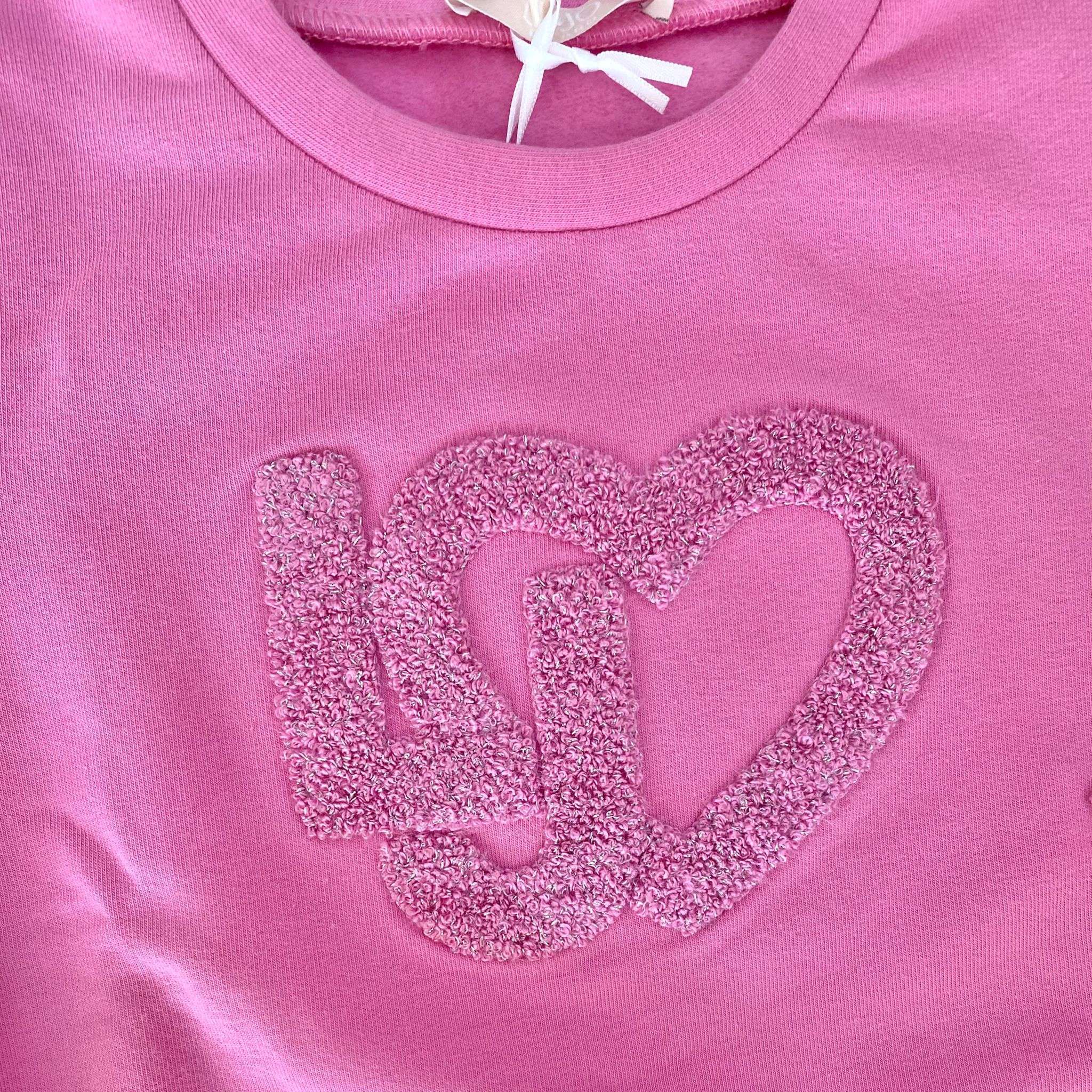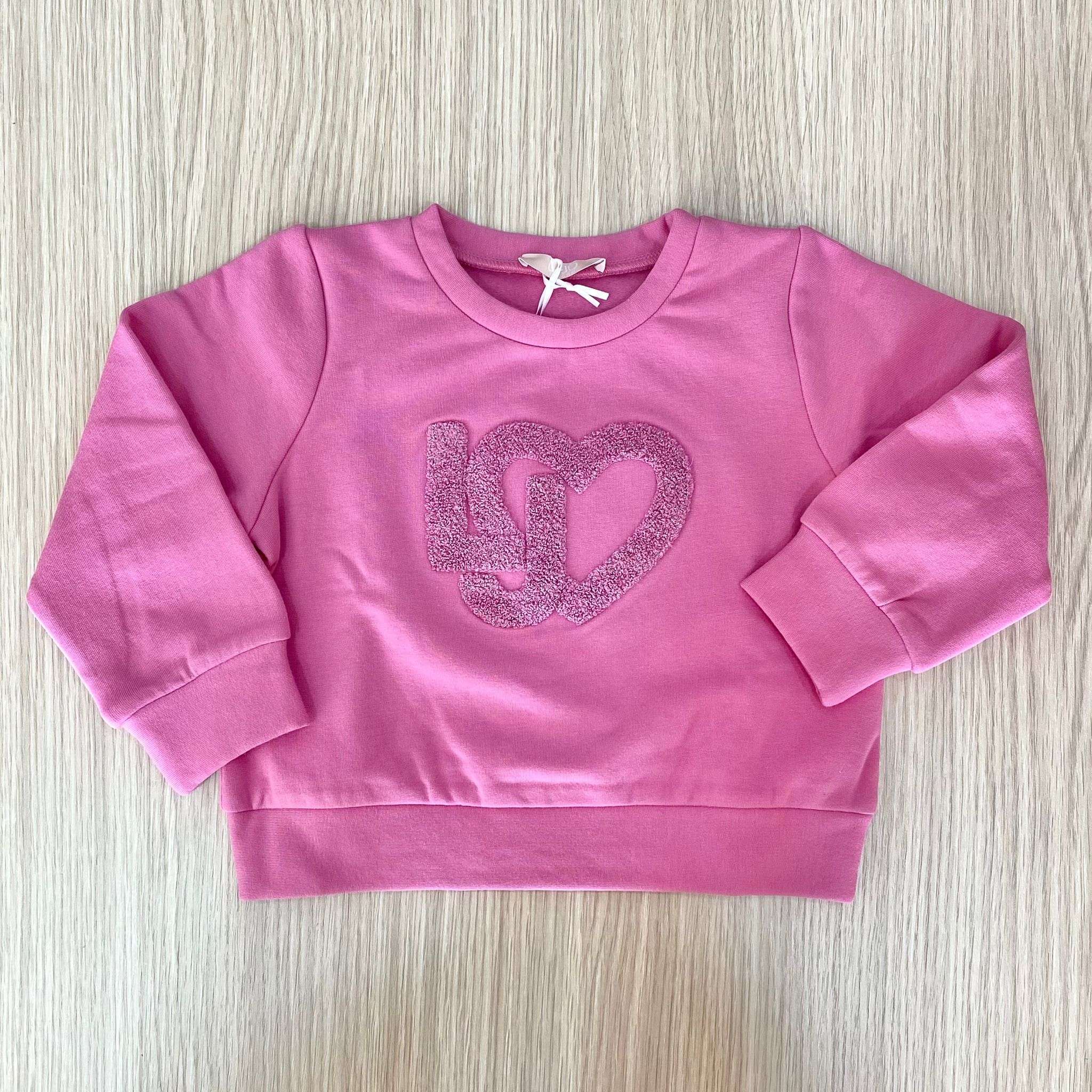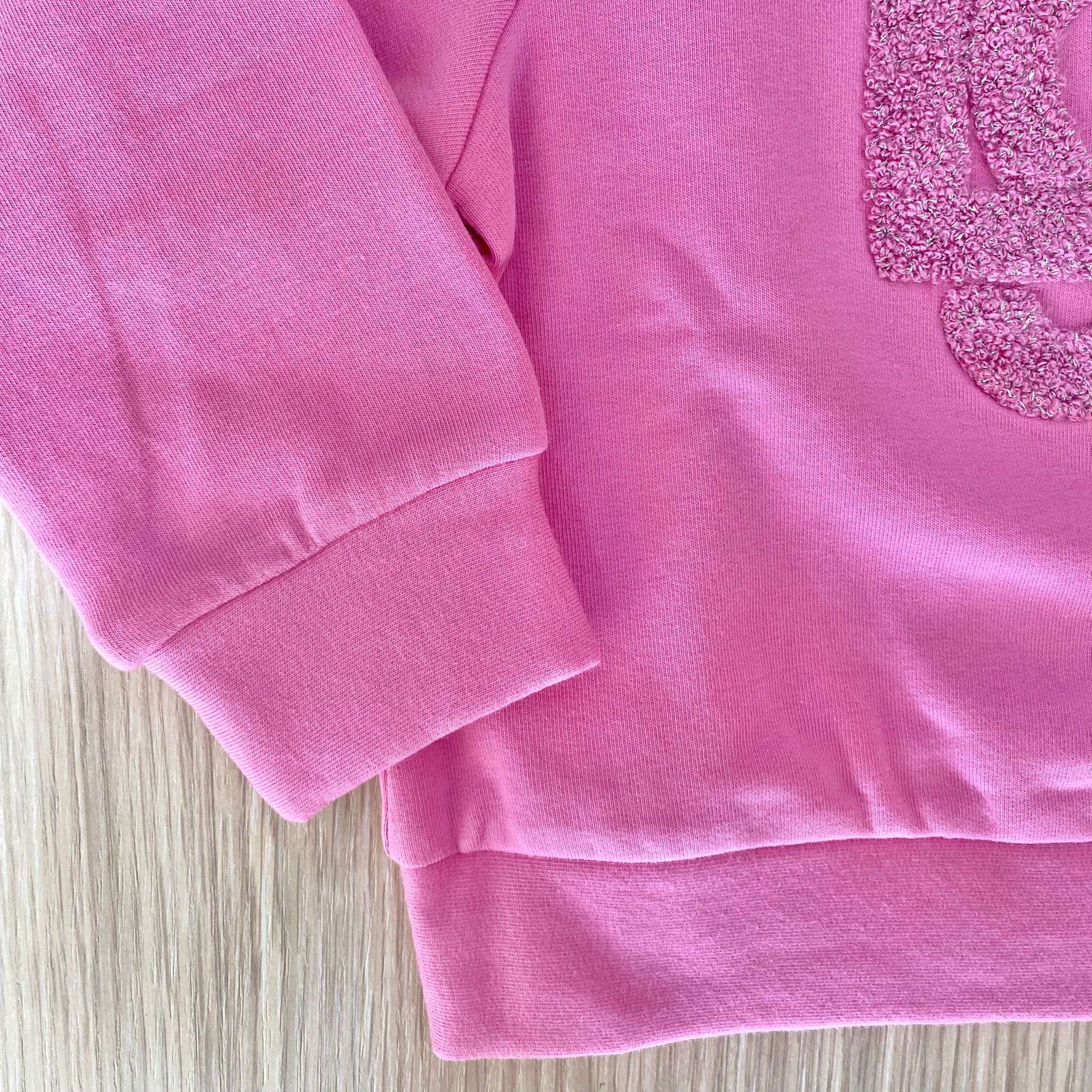 Felpa bambina in cotone felpato, di colore rosa, con logo in rilievo.