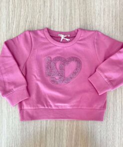 Felpa bambina in cotone felpato, di colore rosa, con logo in rilievo.