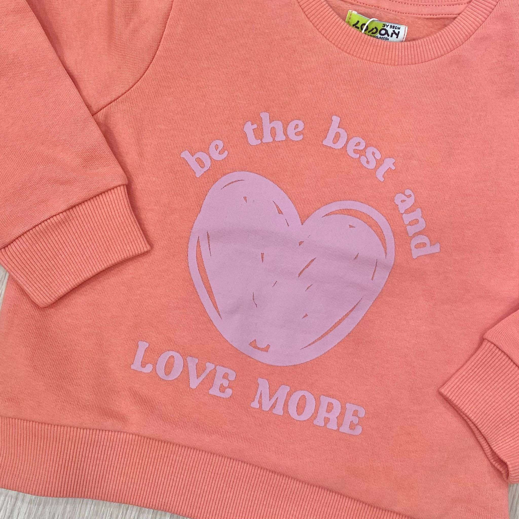 Felpa bambina in cotone felpato, di colore rosa, con stampe di vari colori.