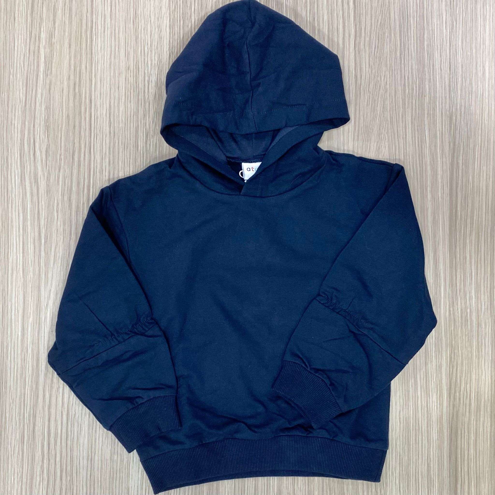 Felpa bambina/ragazza in cotone felpato, di colore blu, con maniche a sbuffo.