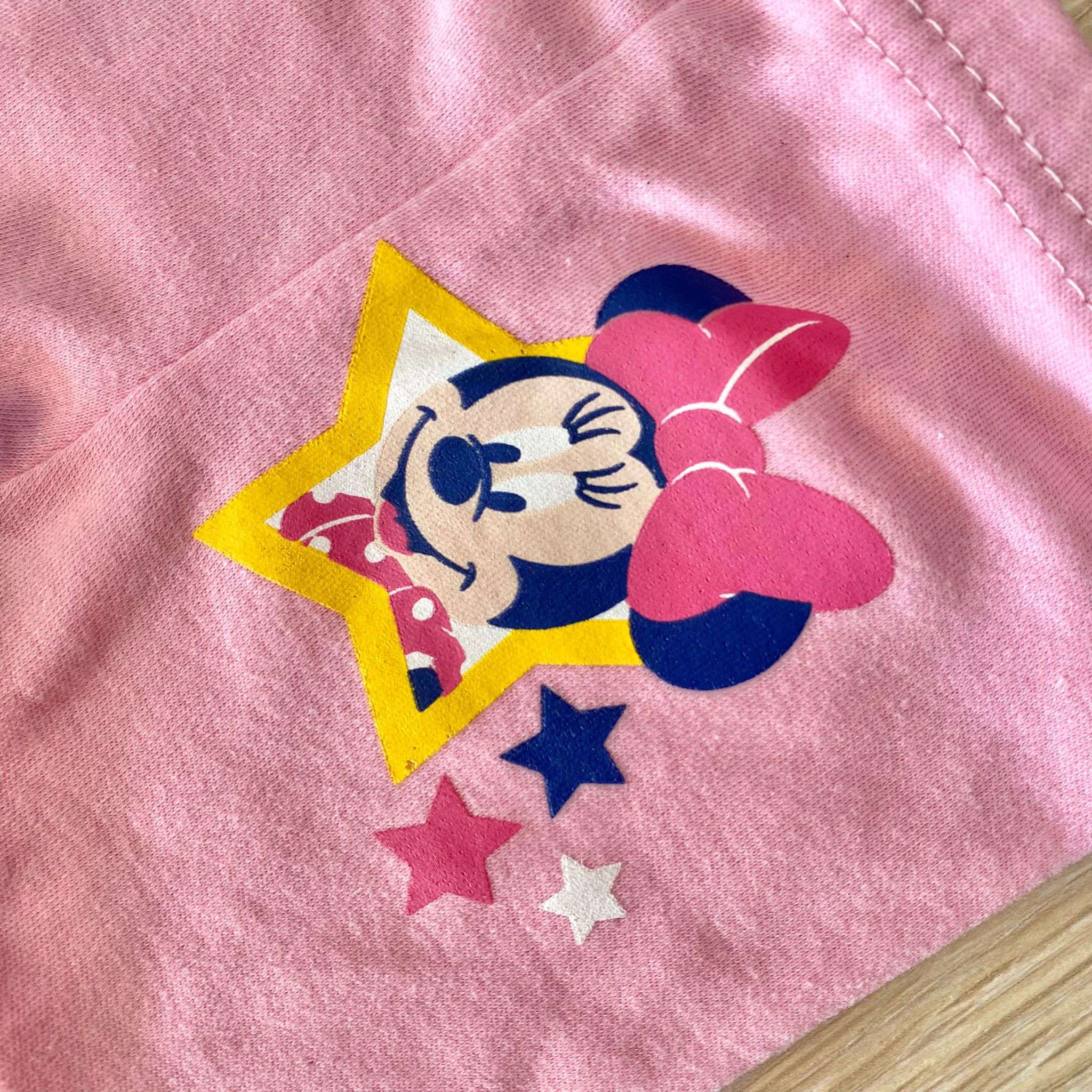 Ghettina sanitaria neonata in caldo cotone, di colore rosa con stampa Minnie di vari colori.