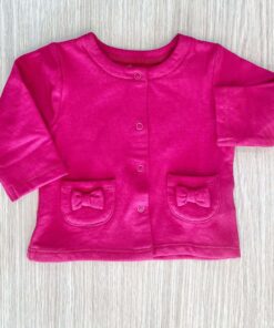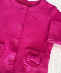 Giacca neonata/bambina in cotone felpato, di colore fucsia, con apertura con bottoncini. Giacca con dettaglio di fiocchetti in tessuto.