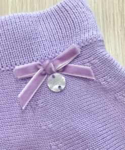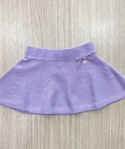 Gonna neonata/bambina in caldo cotone, di colore glicine chiaro, con applicazione di fiocchetto in velluto e logo.