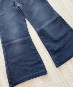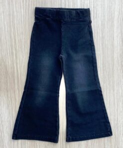 Jeans a zampa bambina in cotone , in denim nero, con elastico regolabile all’interno.