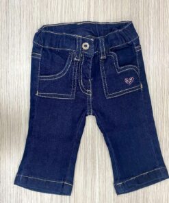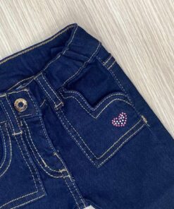 Jeans a zampa neonata/bambina in cotone, in denim, con applicazione di strass. Jeans con elastico regolabile all’interno.