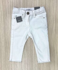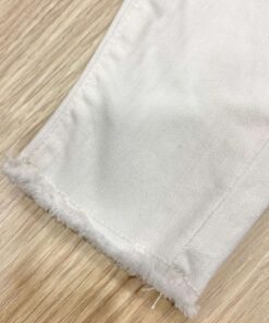 Jeans bambina in cotone, di colore bianco, con dettaglio sfranciato.