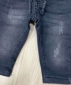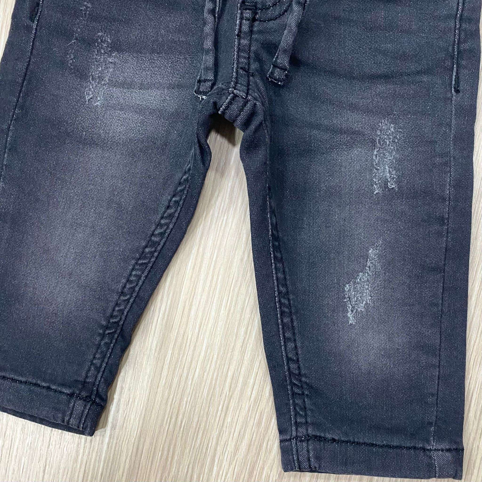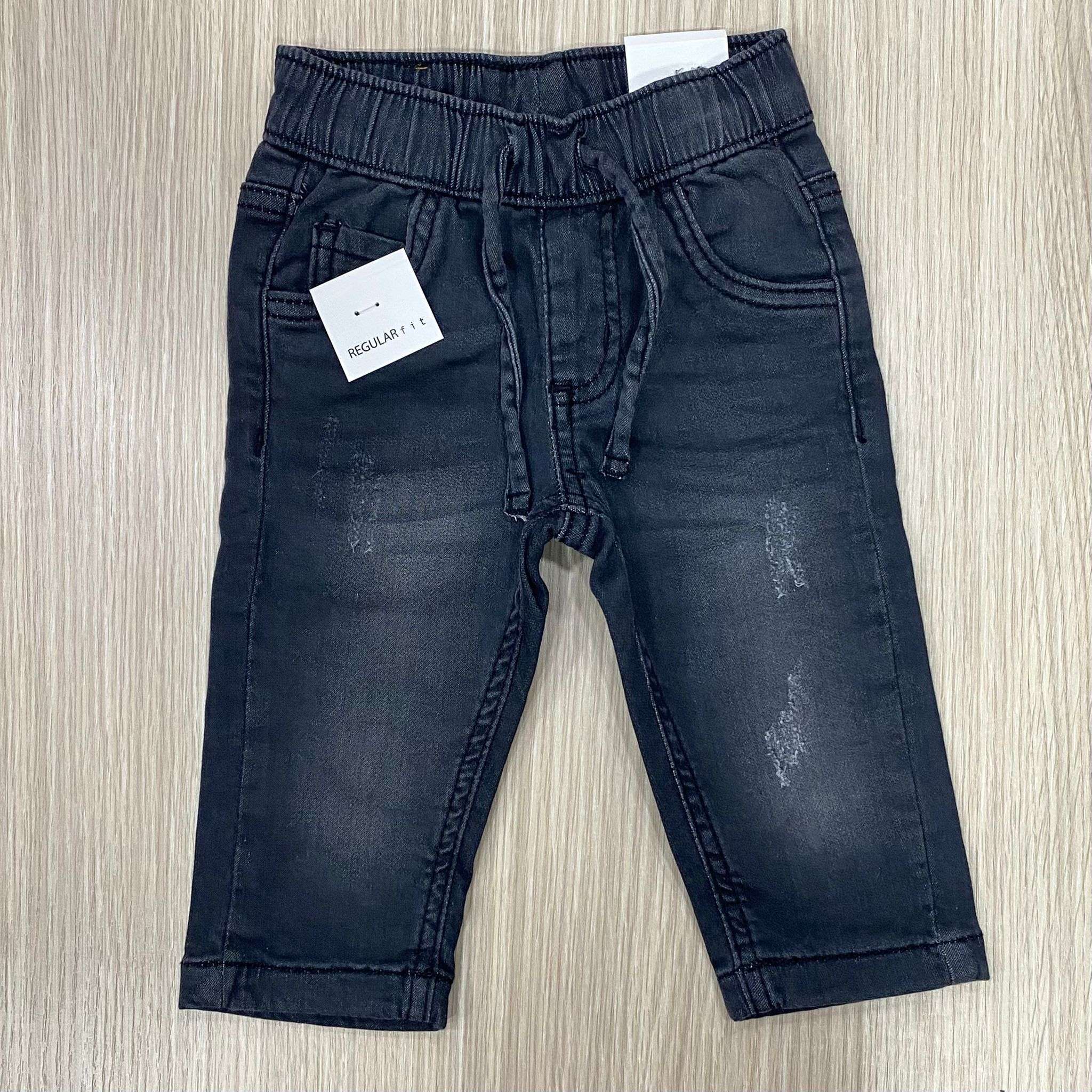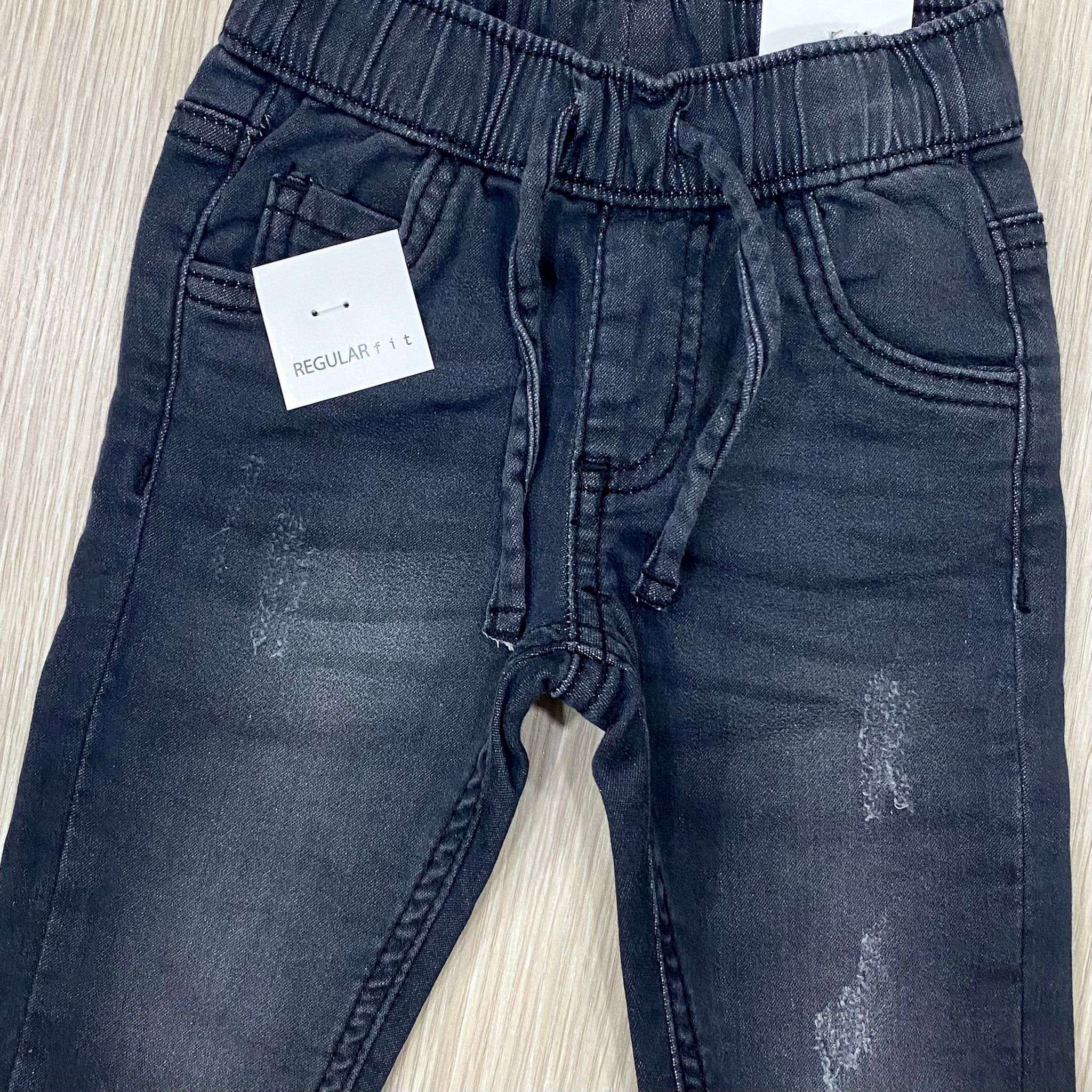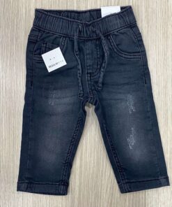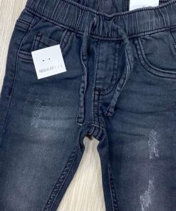 Jeans bambino in denim con interno in caldo cotone, di colore grigio scuro, con elastico e laccetto regolabile.