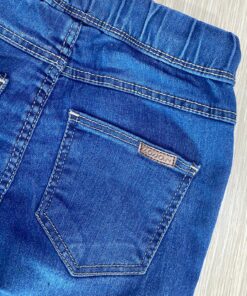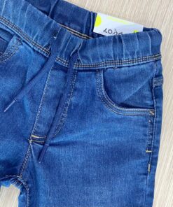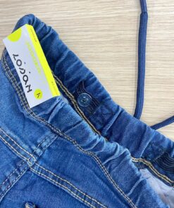 Jeans bambino in cotone, in denim medium, con laccetto ed elastico regolabile all’interno.