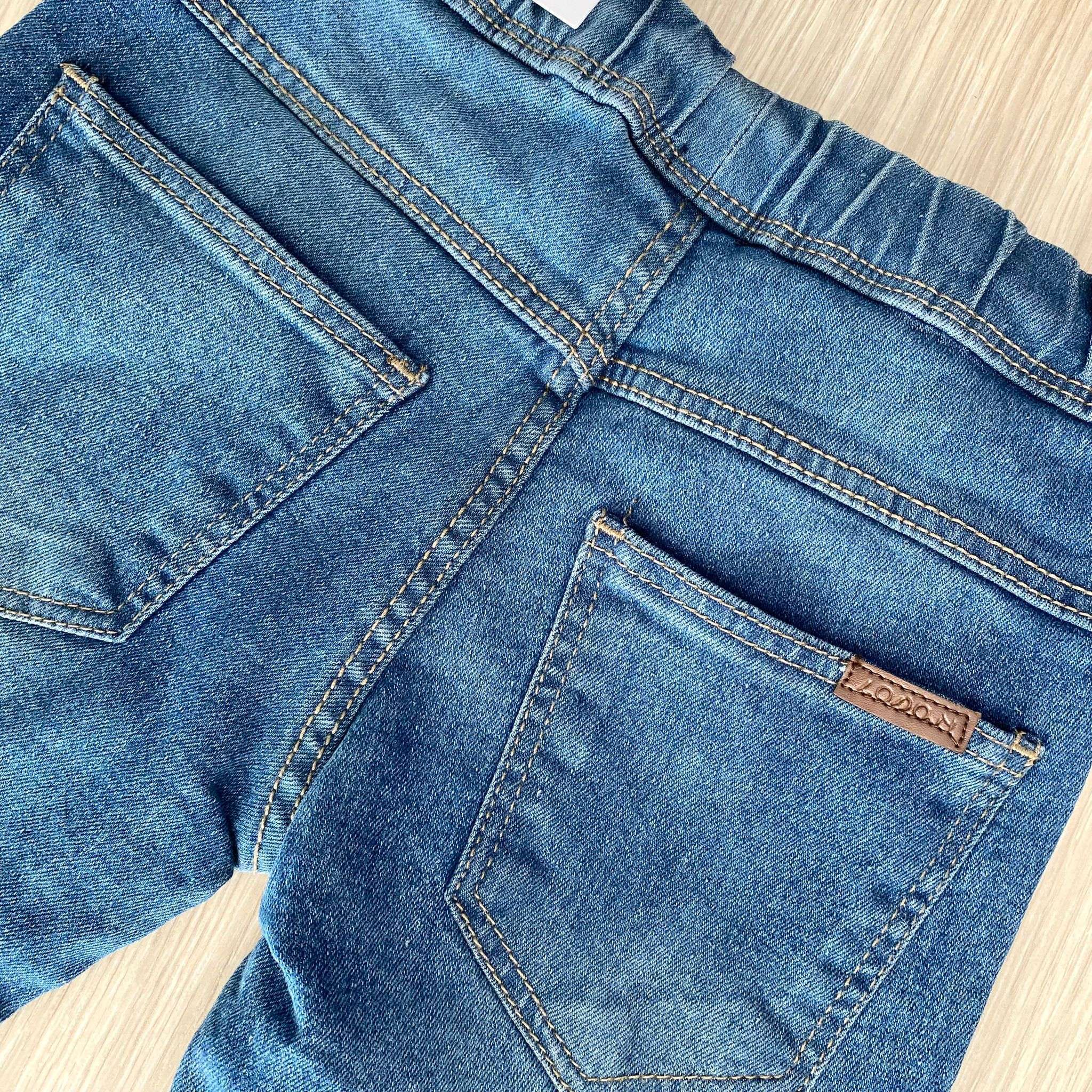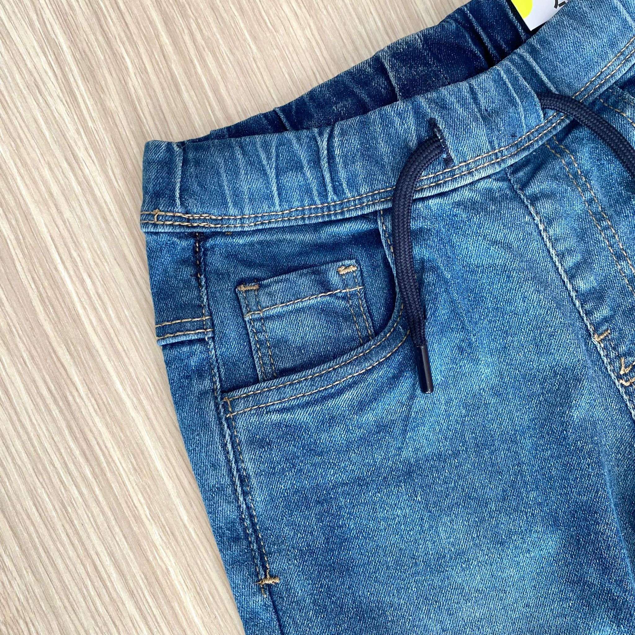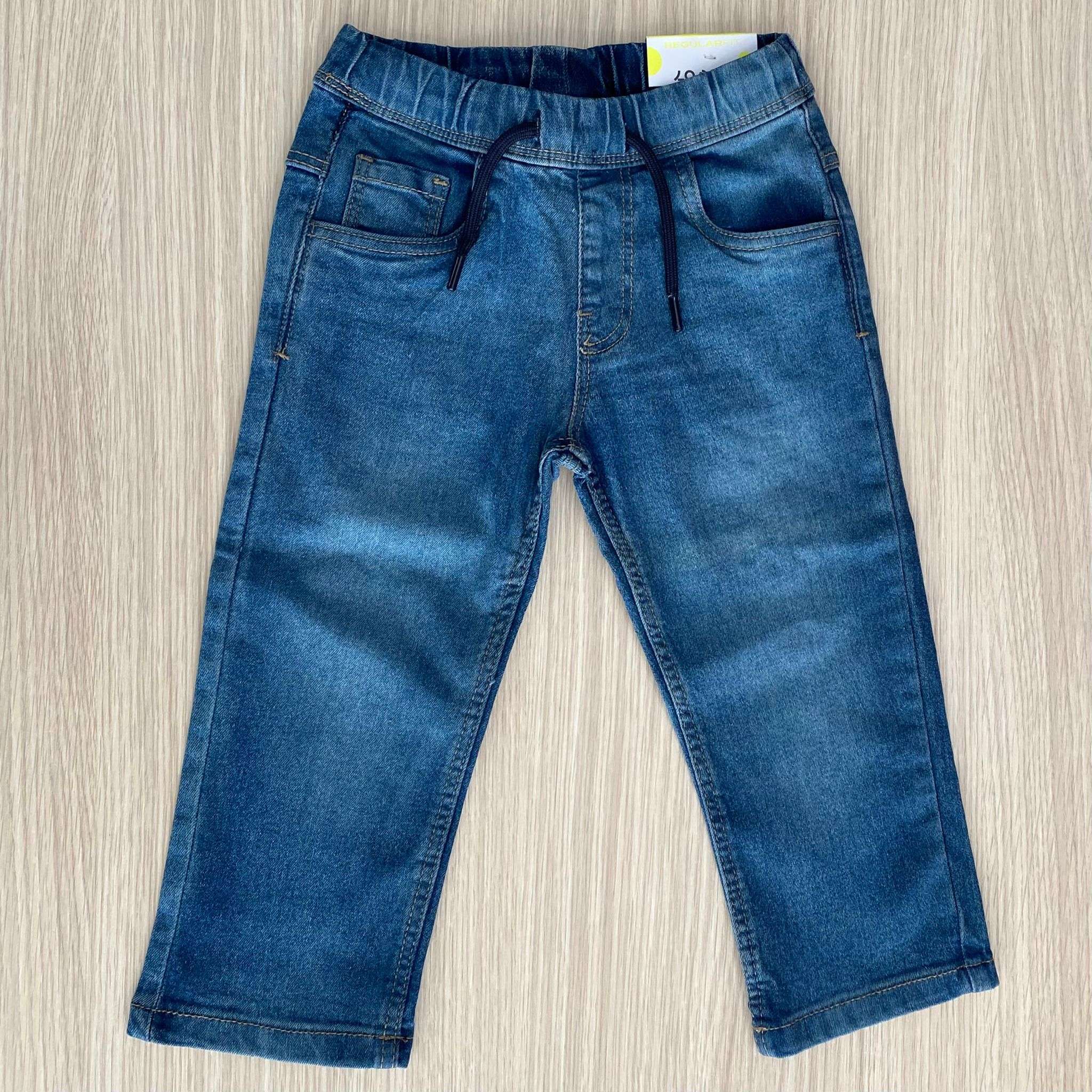 Jeans bambino in cotone, in denim medium, con laccetto ed elastico regolabile all’interno.