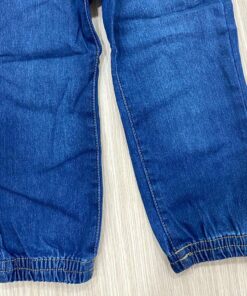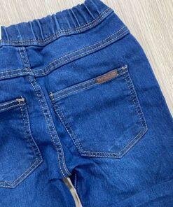 Jeans bambino in cotone, in denim medium, con laccetto ed elastico regolabile all’interno.