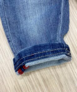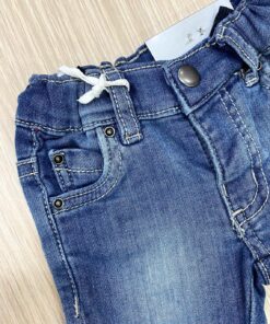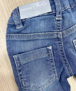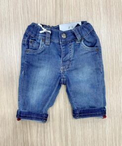 Jeans neonato in morbido cotone elasticizzato, chiusura facilitata con gancio.