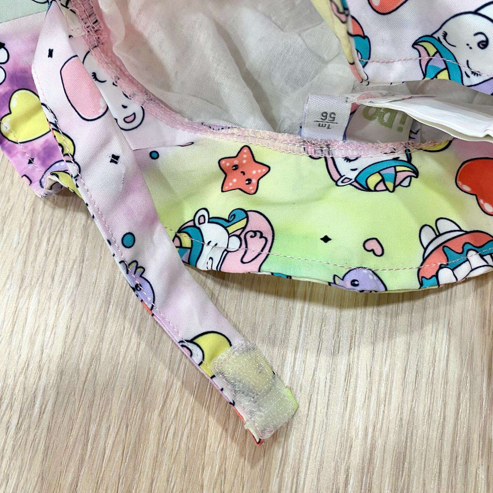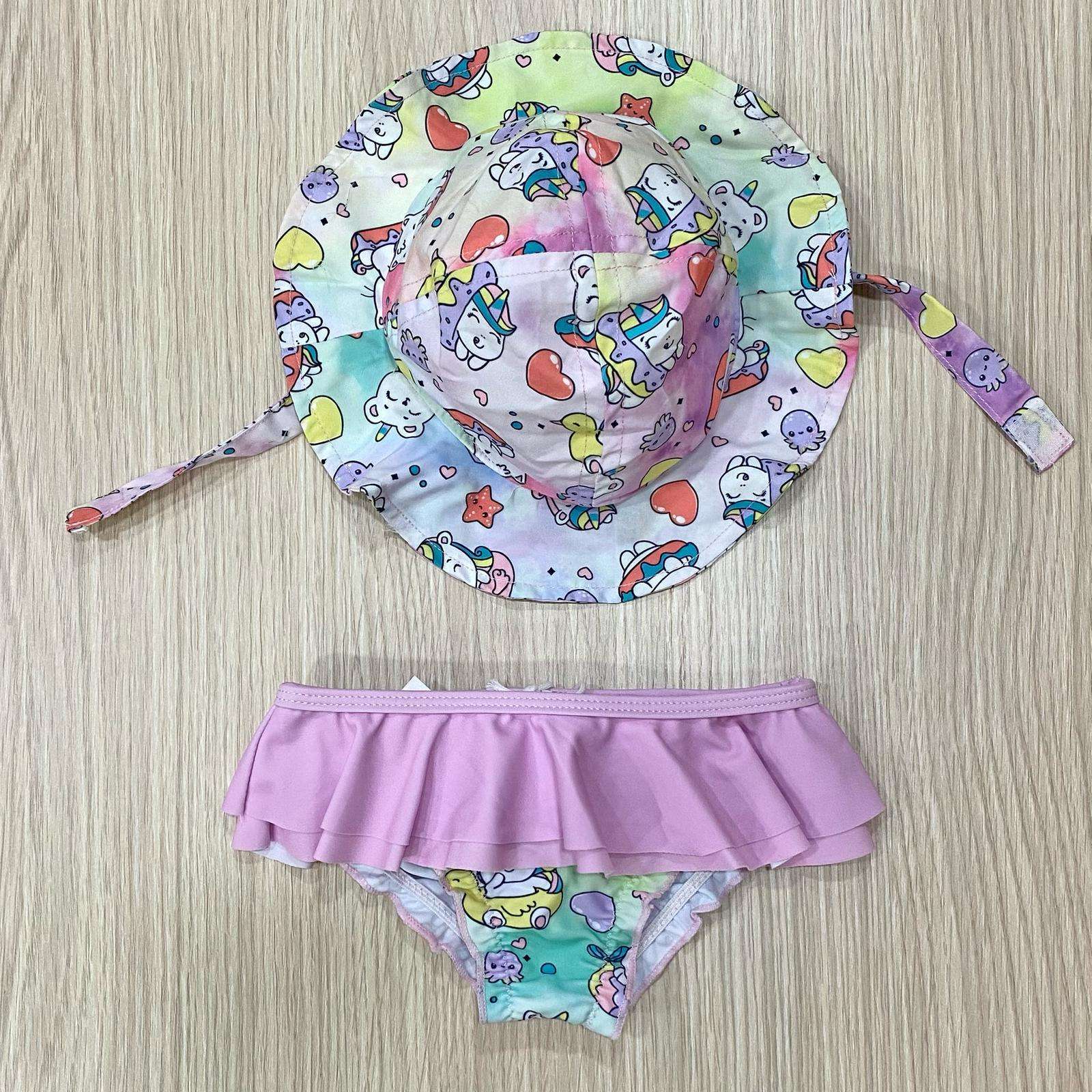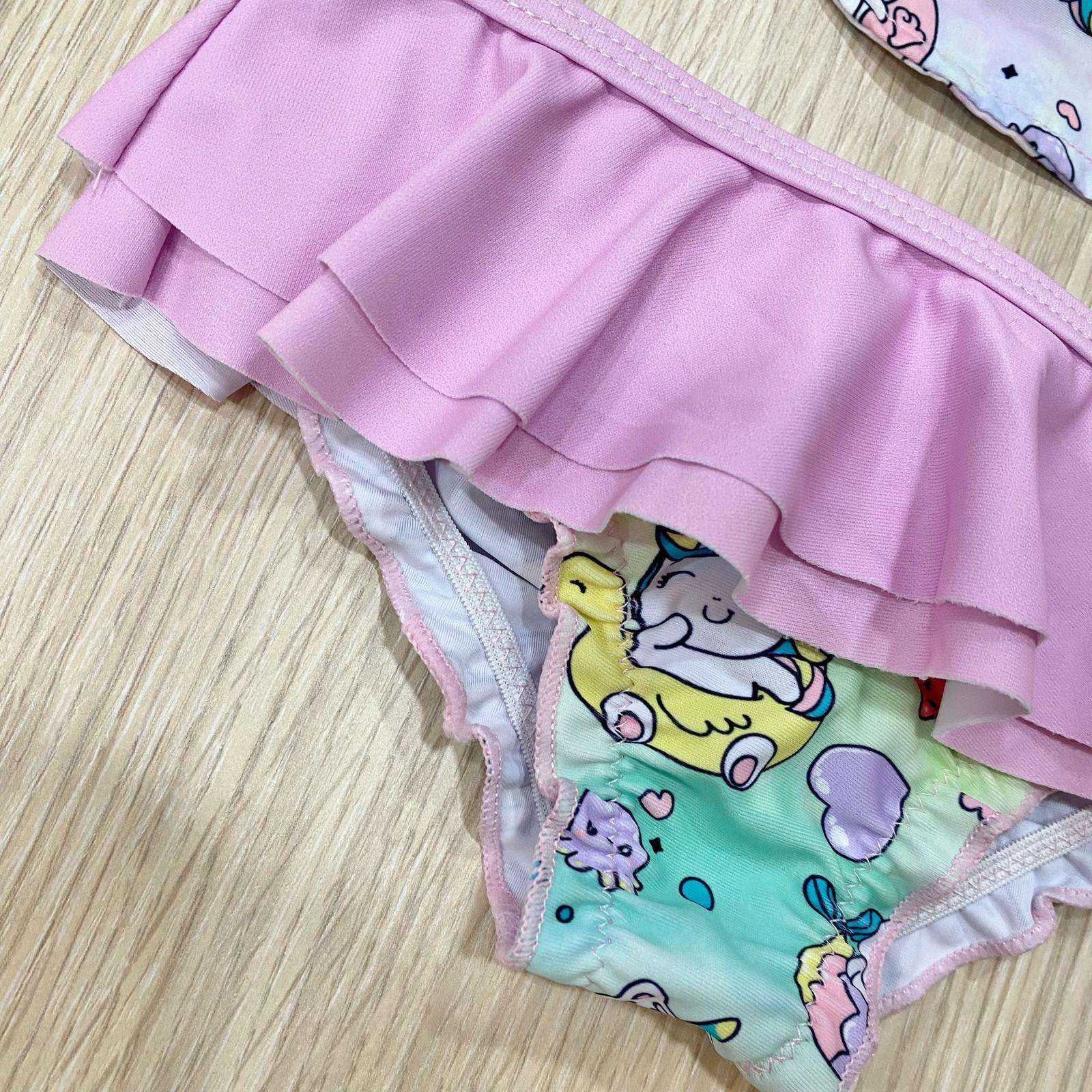 Kit mare neonata/bambina in tessuto elasticizzato, di colore rosa, con dettagli di vari colori.