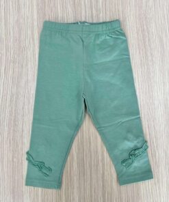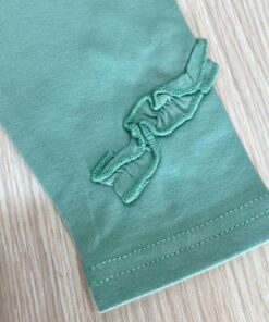Leggings bambina in cotone felpato, di colore verde pastello, con dettaglio in rilievo.