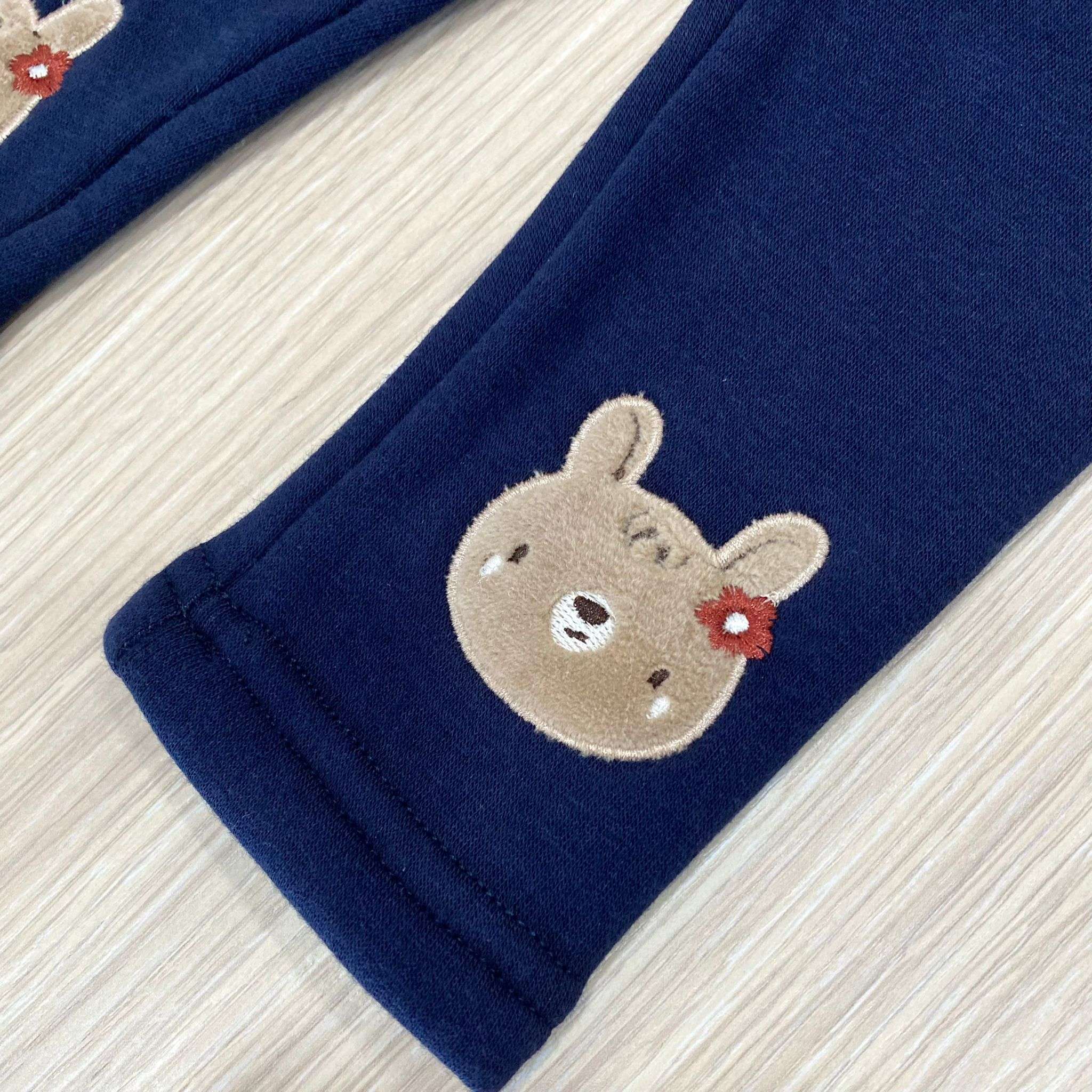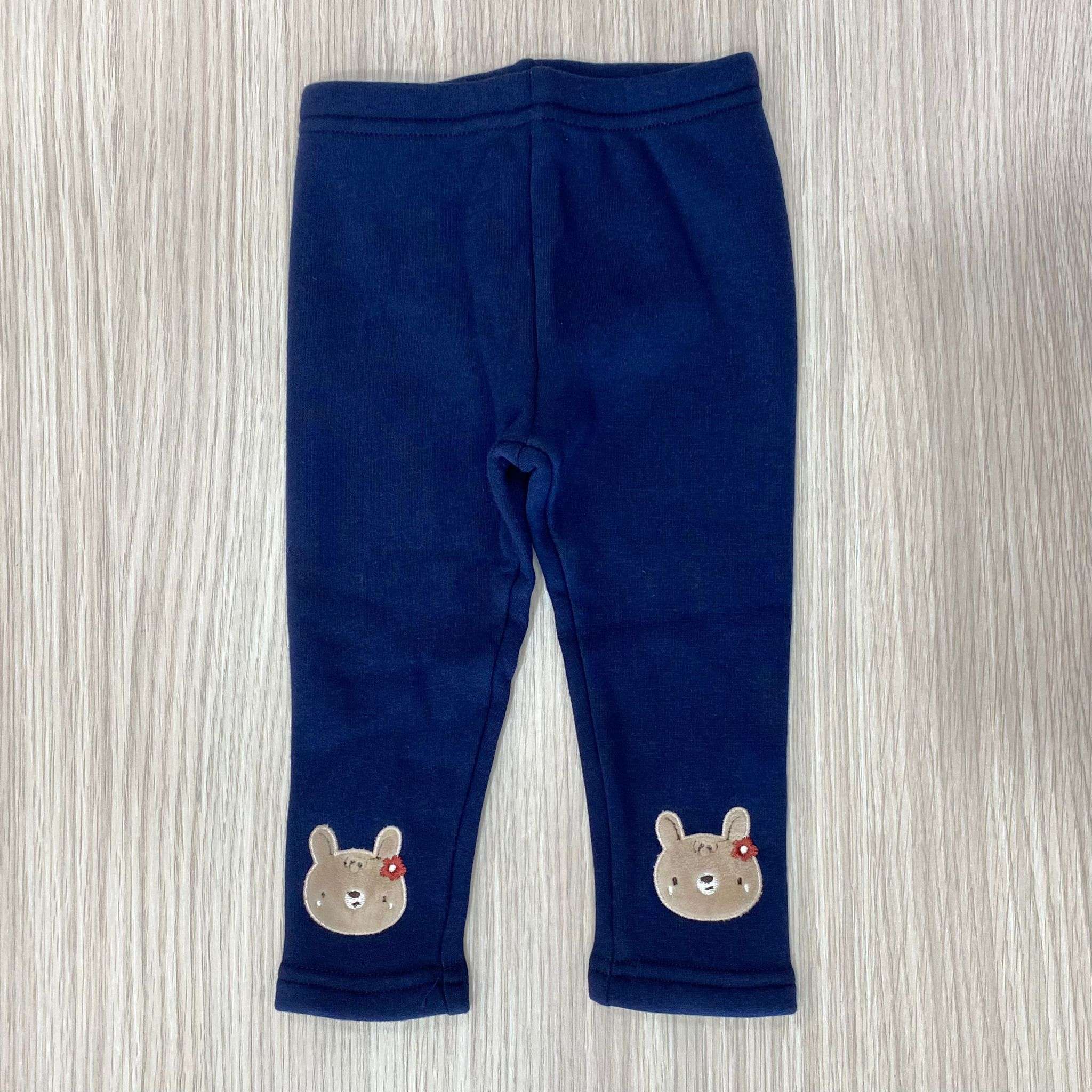 Leggings bambina con interno in pile, di colore blu e disegno in rilievo di vari colori.