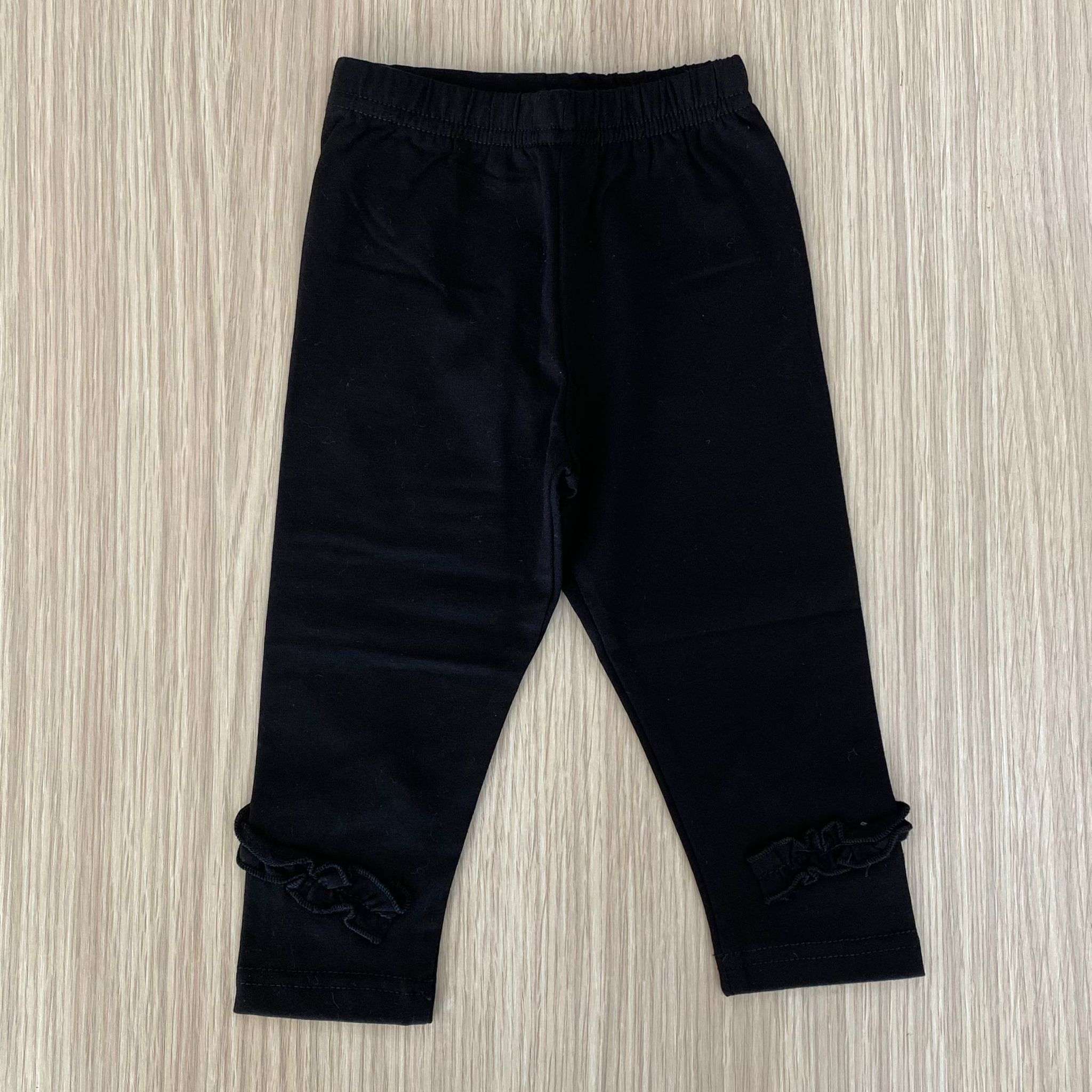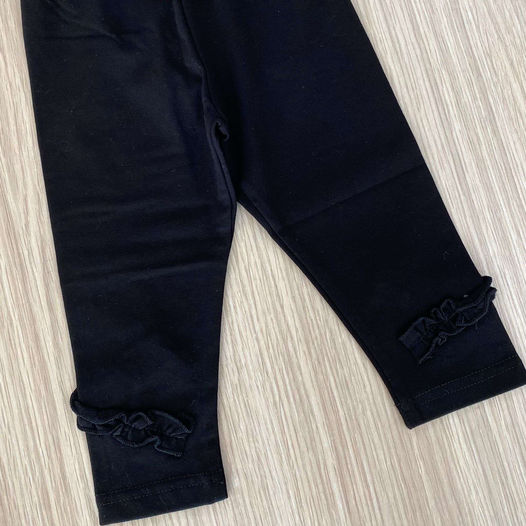 Leggings bambina in cotone felpato, di colore nero, con dettaglio di riccetto.