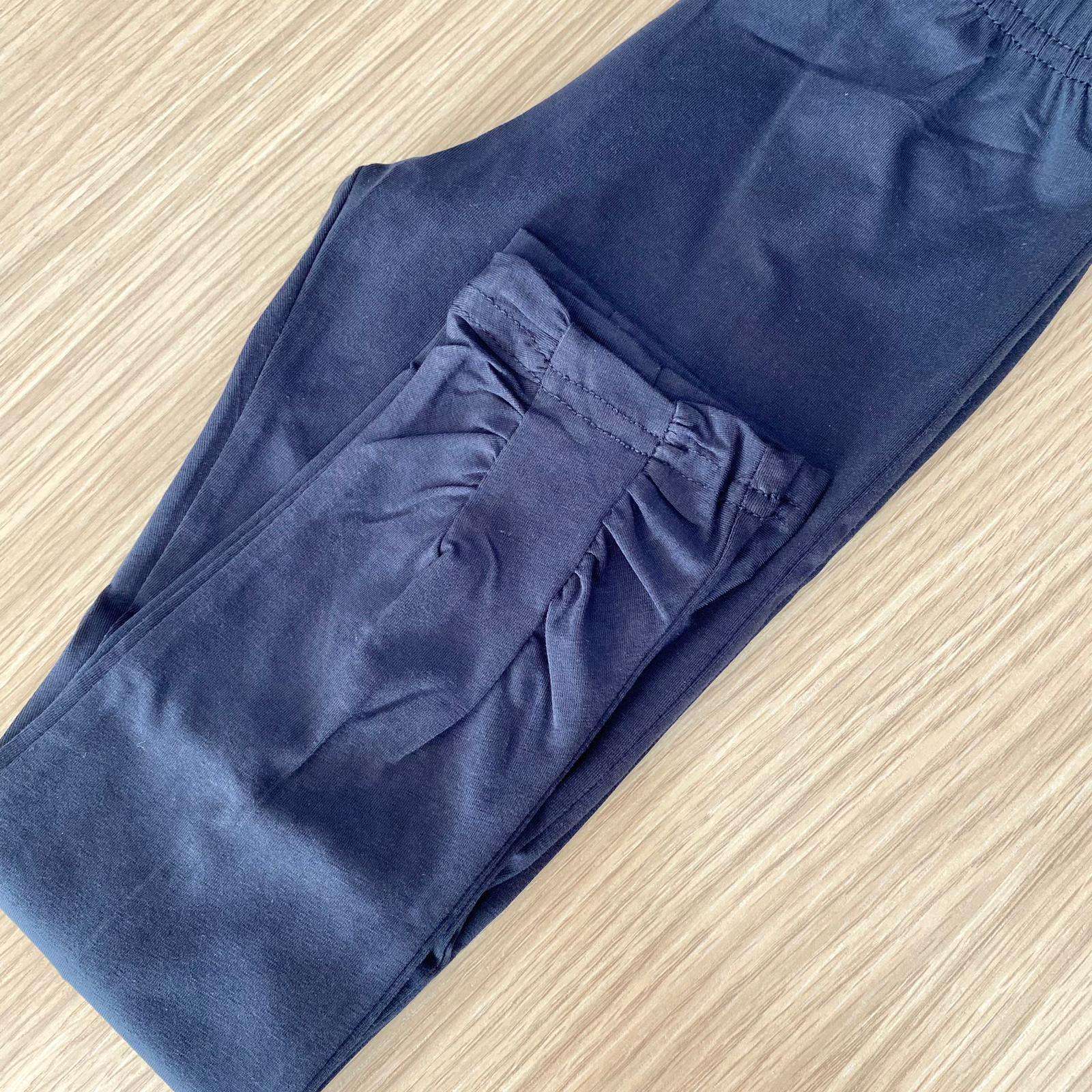 Leggings bambina/ragazza in cotone, di colore blu, con dettagli arricciato.