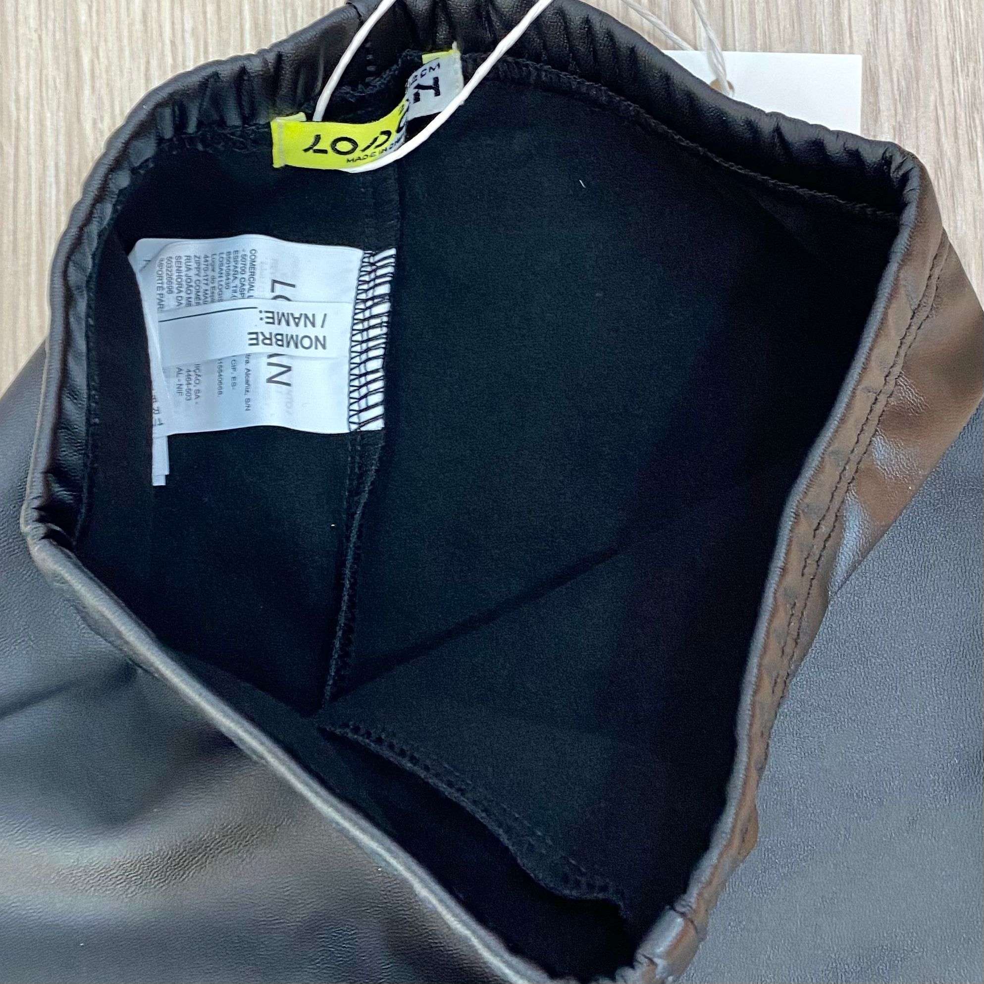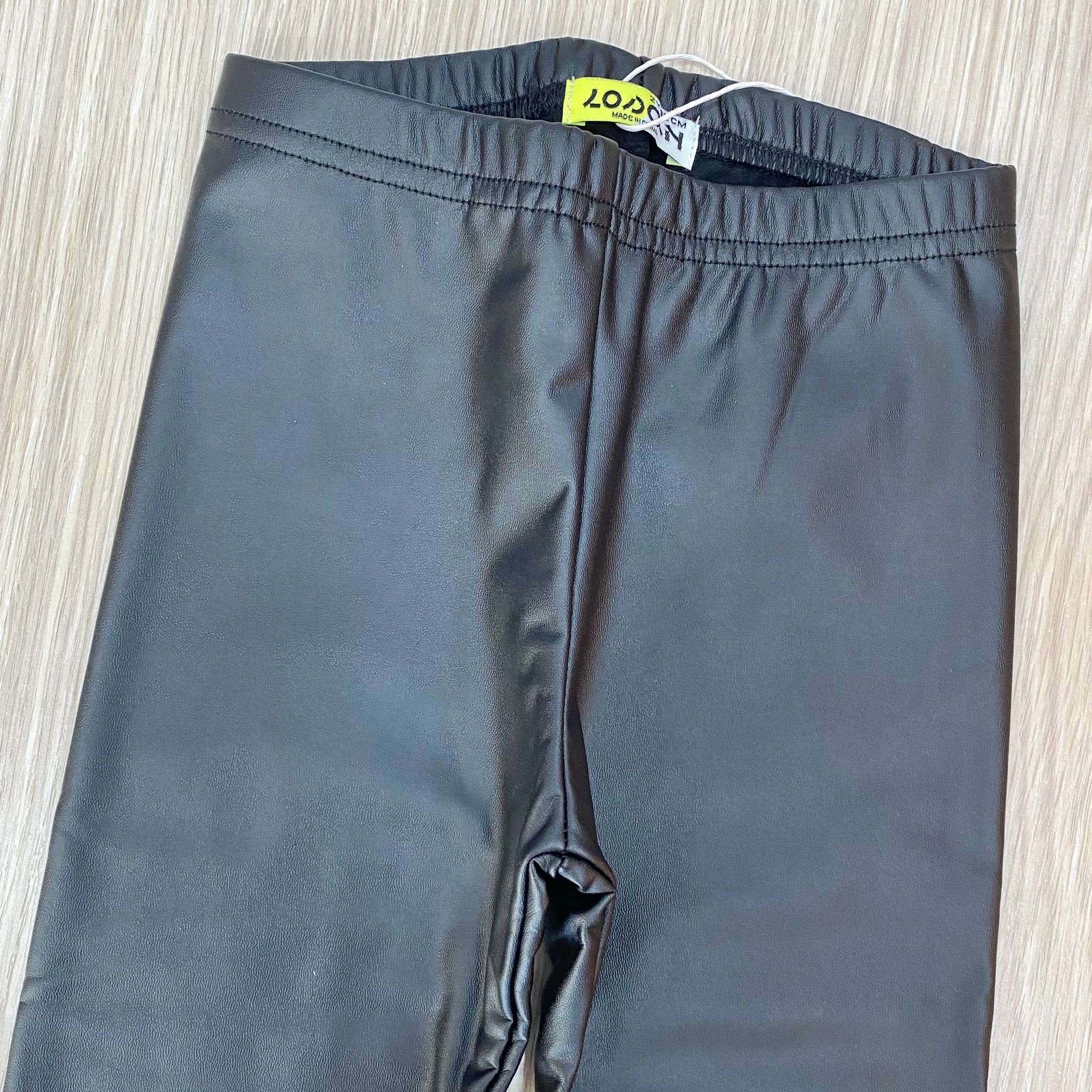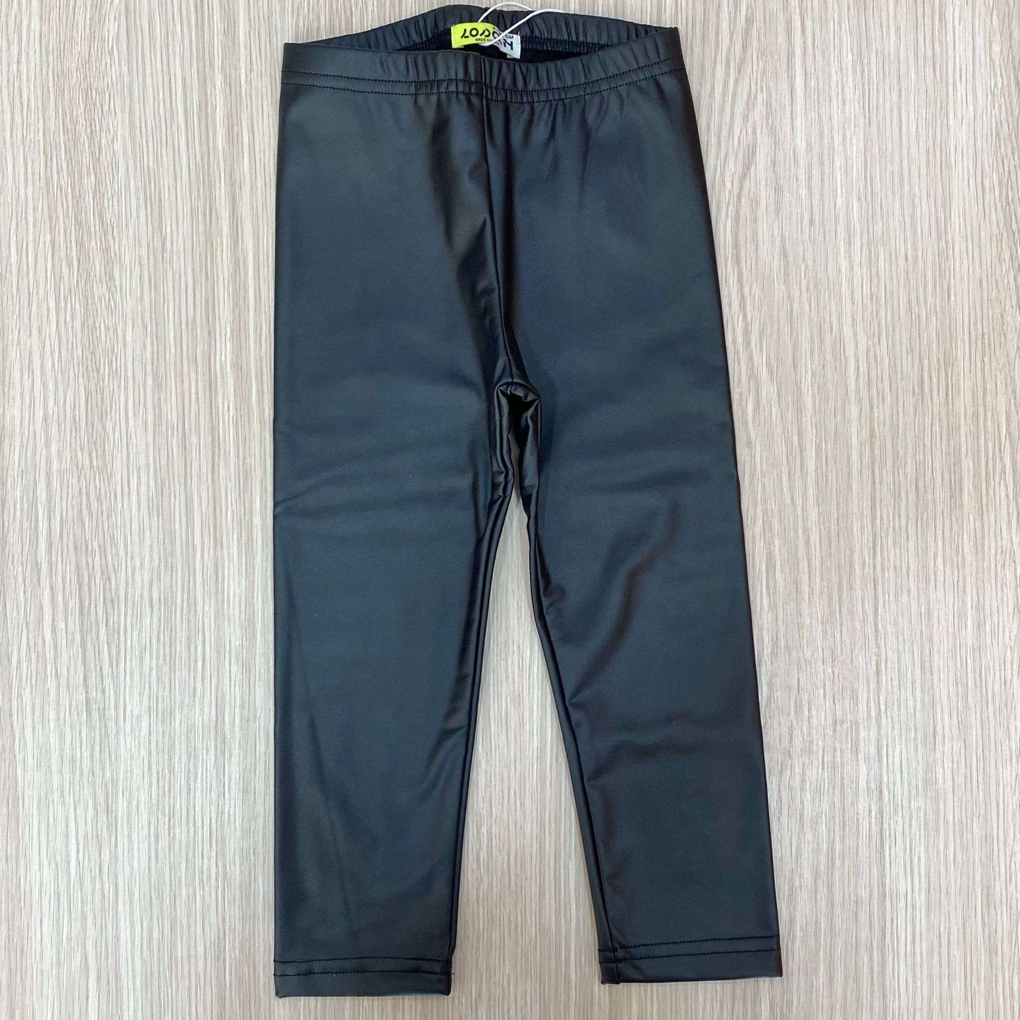 Leggings in ecopelle bambina/ragazza in cotone felpato, di colore nero.