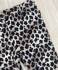 Leggings neonata/bambina in caldo cotone, di colore beige, con effetto animalier di vari colori.