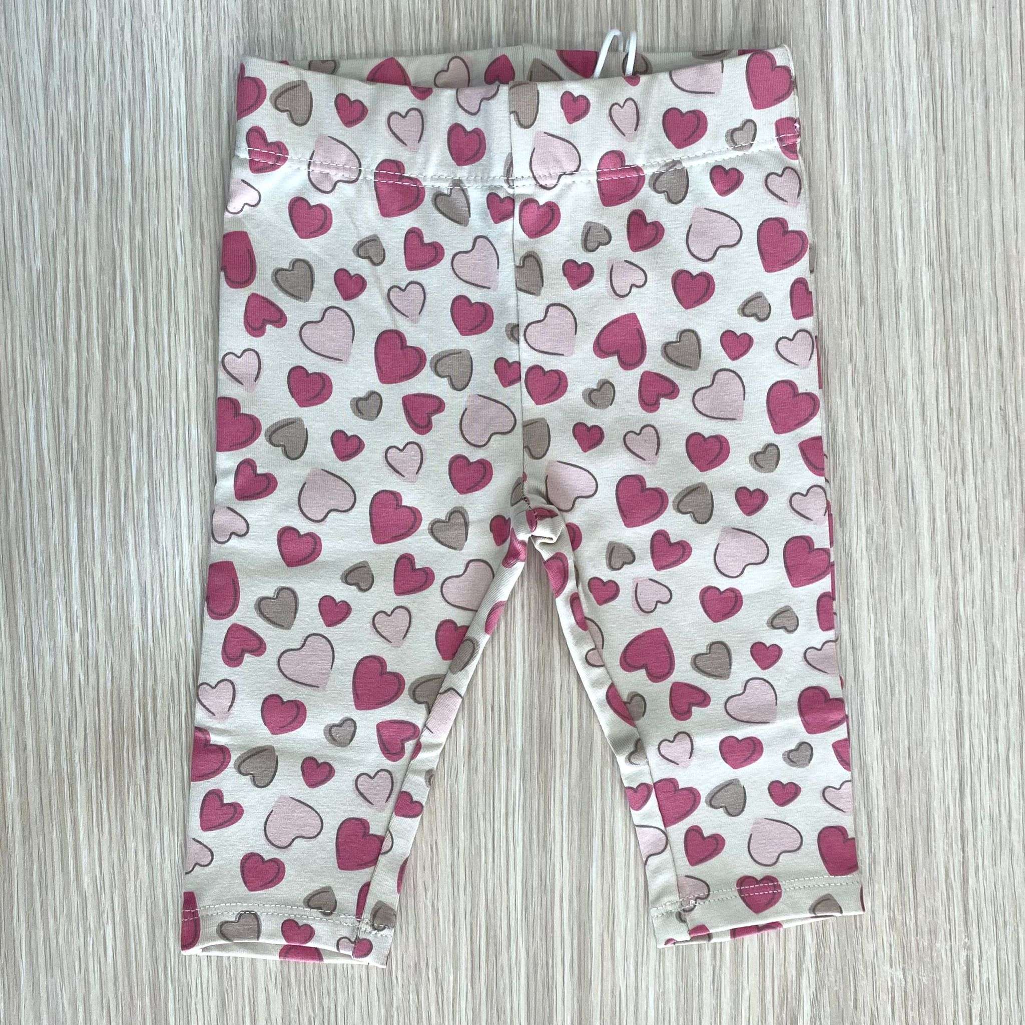 Leggings neonata/bambina in caldo cotone, di colore beige e rosa.