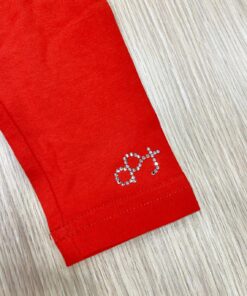 Leggings neonata in cotone, di colore corallo con applicazione di strass.